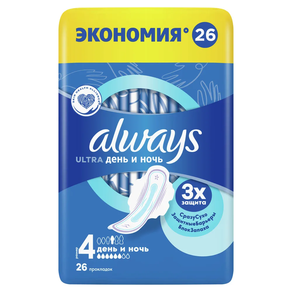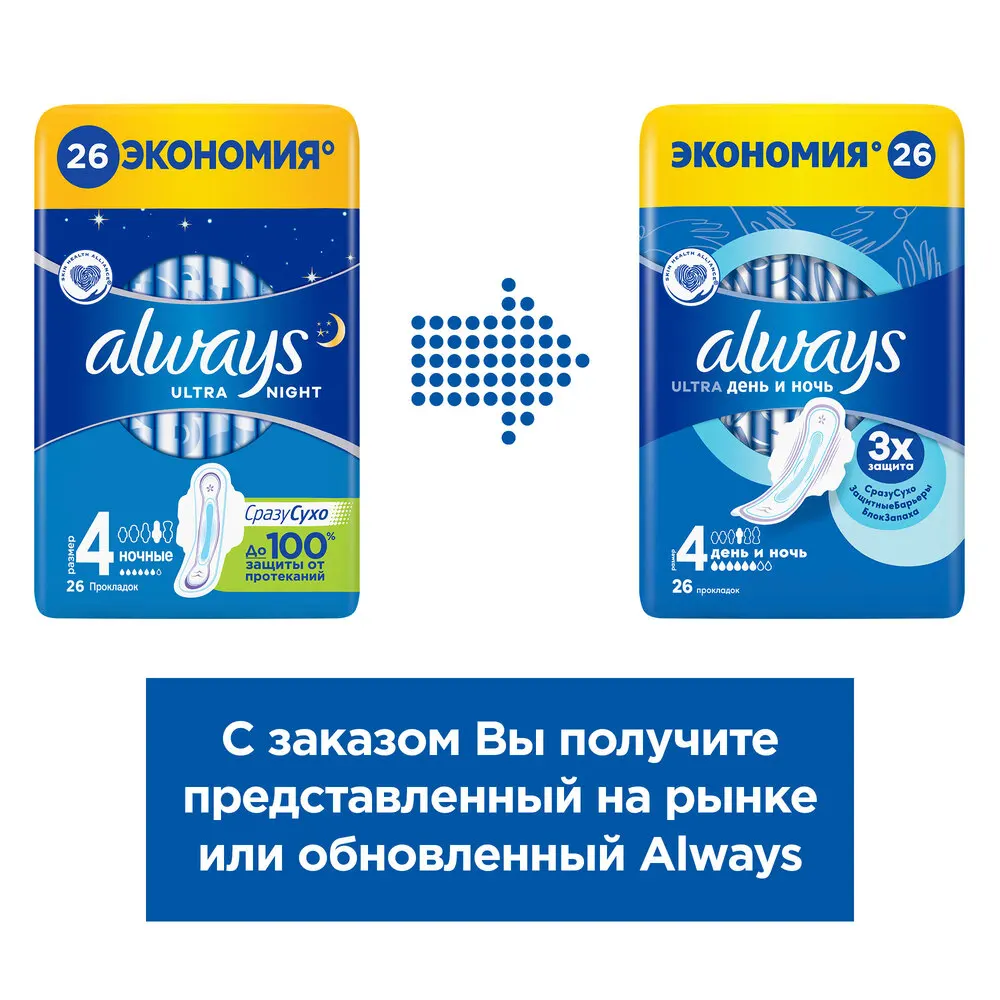 Женские гигиенические прокладки с крылышками Always Ultra День и Ночь, размер 4, 26 шт.