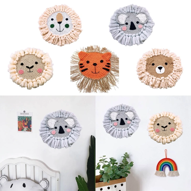 Мультфильм голова животного детская комната орнамент скандинавские ручные тканые настенные украшения хлопок Нить Ткачество
