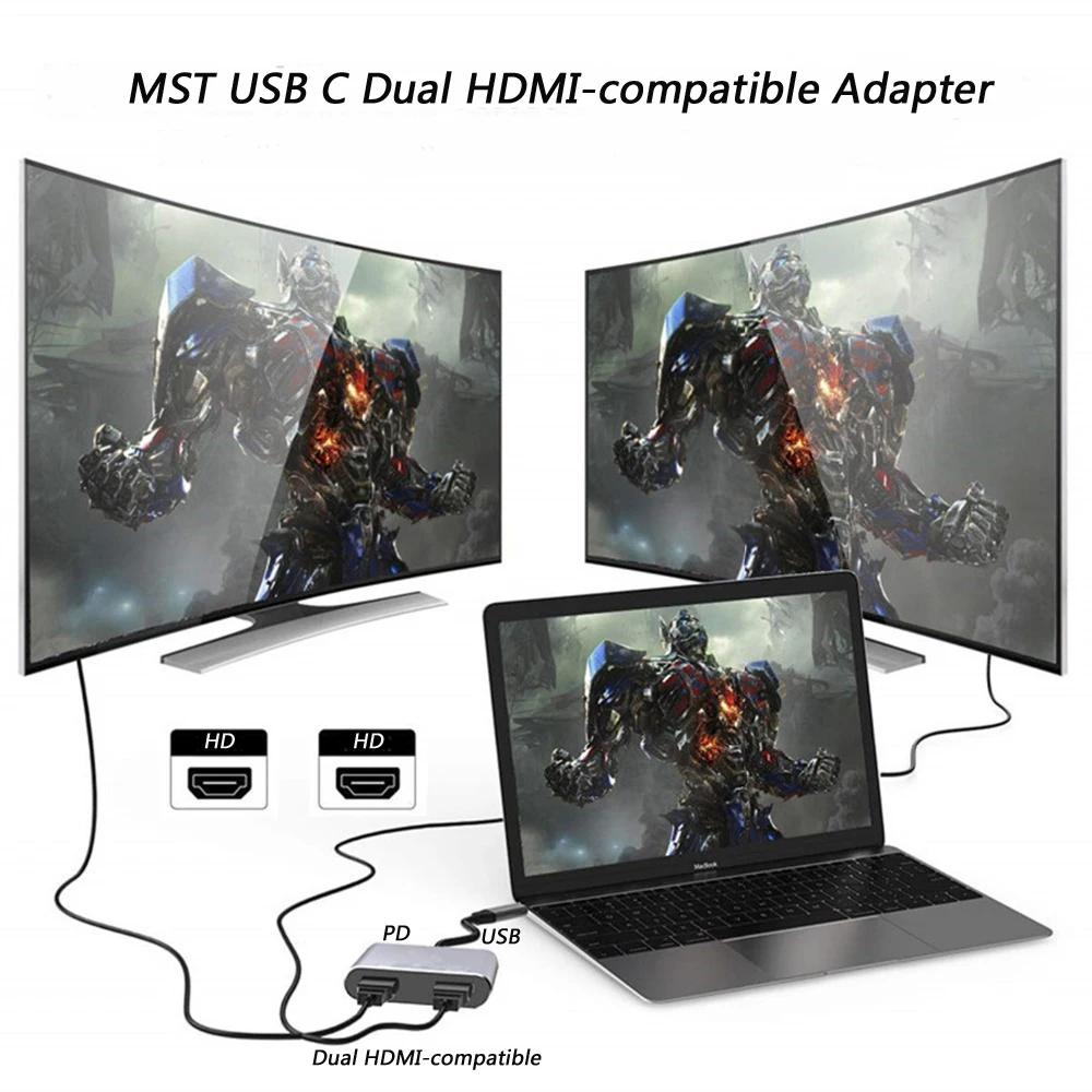 2 x HDMI-Совместимость: 4K 30HZ обратная совместимость с 1080P, 720P и т. Д. 1 x порты USB 3,0-Максимальная скорость передачи данных 5 ГБ/сек., а также высокая мощность для ваших устройств. 1 x порт питания Когда вы используете два порта HDMI, мощность порта PD не может превышать 60 Вт, если более 60 Вт, то это приведет к нормальному использованию двух портов HDMI.