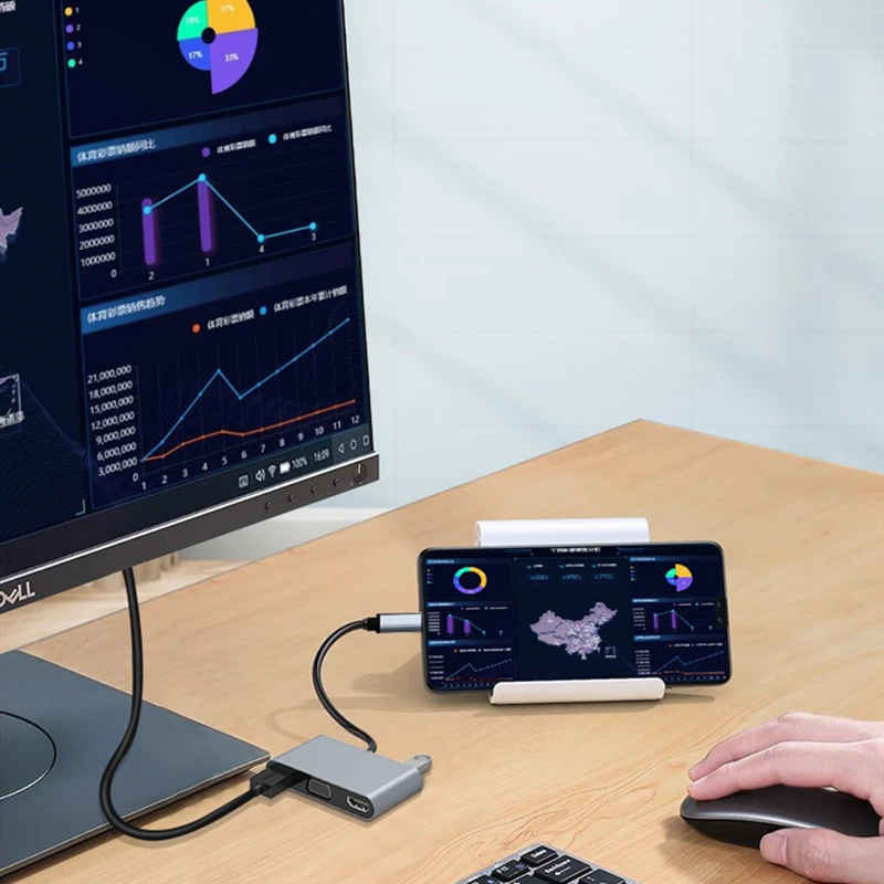 2 x HDMI-Совместимость: 4K 30HZ обратная совместимость с 1080P, 720P и т. Д. 1 порт VGA 1 x порты USB 3,0-Максимальная скорость передачи данных 5 ГБ/сек., а также высокая мощность для ваших устройств. 1 x порт питания Когда вы используете два порта HDMI, мощность порта PD не может превышать 60 Вт, если более 60 Вт, то это приведет к нормальному использованию двух портов HDMI.