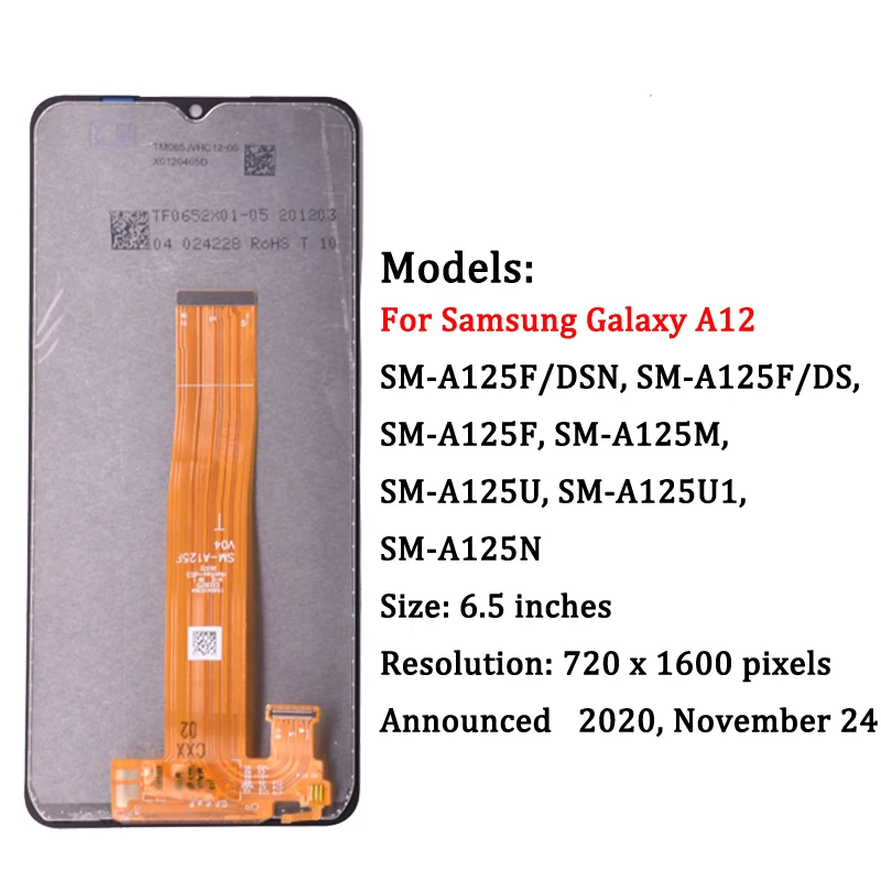 Совместимые модели: SM-A125F/DSN, SM-A125F/DS, SM-A125F Качество продукции: Это оригинальный ЖК-дисплей и сенсорный экран Тест продукта: мы будем тестировать его один за другим и убедиться, что он работает хорошо. Обслуживание: Самое лучшее обслуживания после продажи, обеспечивает оптовую цену, обеспечивает обслуживание гарантии продукта Пакет включает 1 шт. Для замены ЖК-экрана Samsung Galaxy A12 1 шт. Закаленное стекло бесплатно и инструментыСм. также другие товары: 8881005002284365703, 8881005002284365704, 8881005002284365706, 8881005002284365707