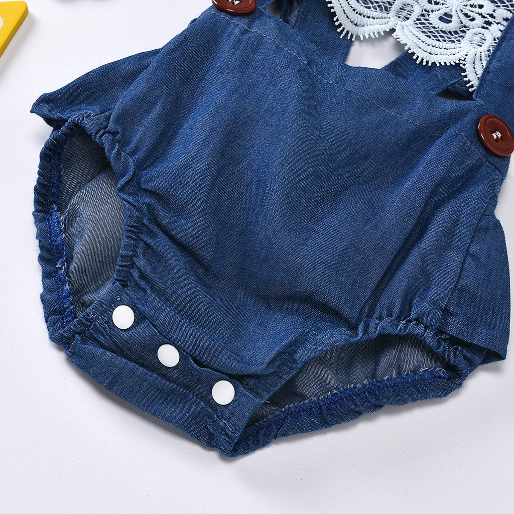 Кружевной комбинезон с рюшами для новорожденных девочек; Джинсовый комбинезон; Повседневная одежда