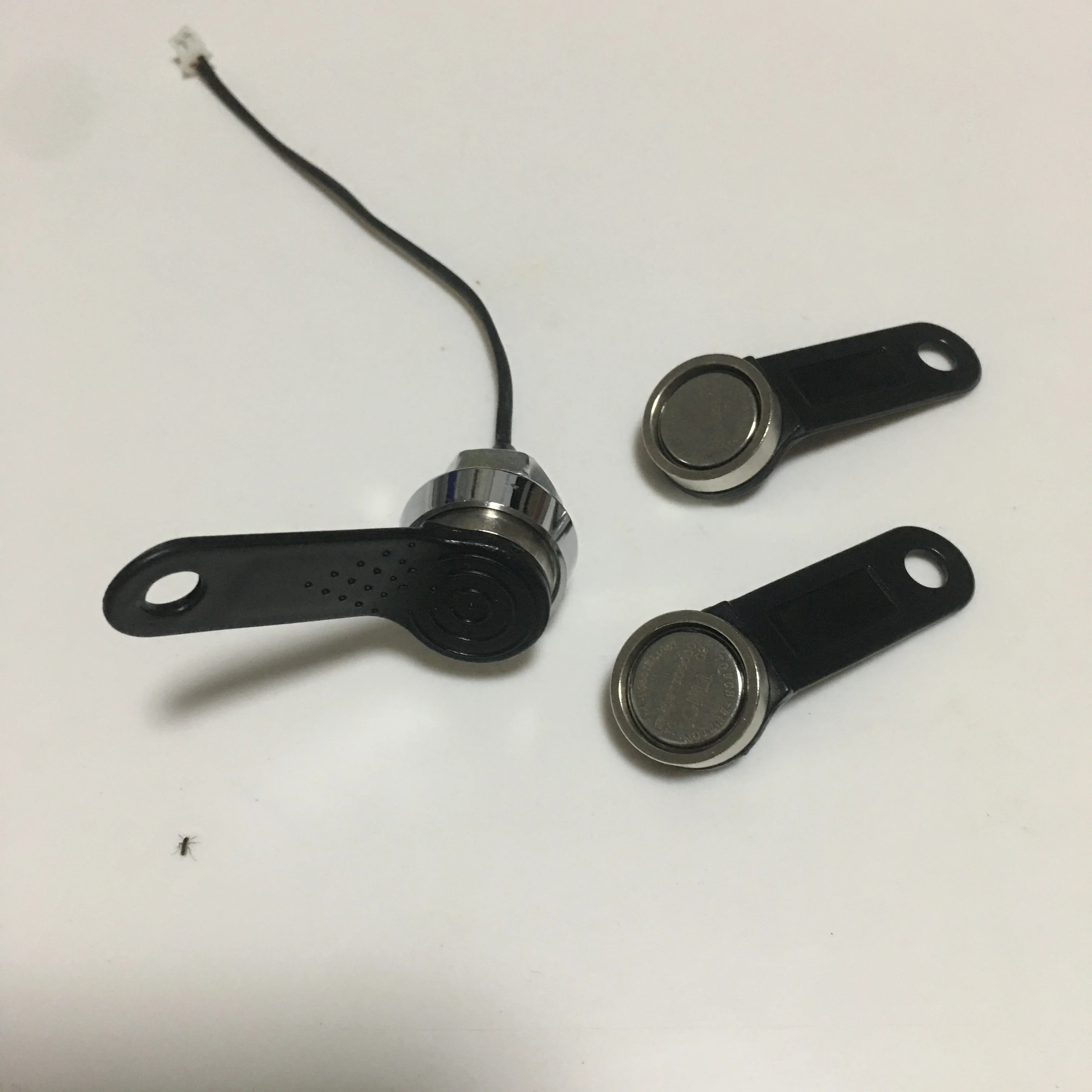 В MG9092D Магнитный Далласский ключ считывания кода для iButton со стальными кольцами-это уникальное устройство, которое было разработано, чтобы провести Магнитный fob в месте с помощью магнитной силы. Корпус изготовлен из немагнитного металла, который имеет круглую плоскую поверхность спереди и-в середине этого лица-изолированный, пружинный штырь (который действует как контакт). Встроенные в магнитный зонд небольшие магниты, которые создают требуемое магнитное поле. Это притягивает магнитные металлы и, таким образом, тянет и удерживает их на лицевой стороне. Сзади зонда находится припой (для сигнала заземления).