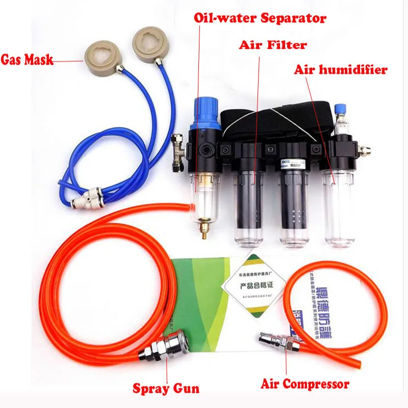 1. Эта система оснащена увлажнителем воздуха, воздушным фильтром и сепаратором масляной воды, поэтому вашему воздушному компрессору не нужен сепаратор масляной воды, когда вы используете этот набор подачи воздуха. Это очень безопасно для вас.
