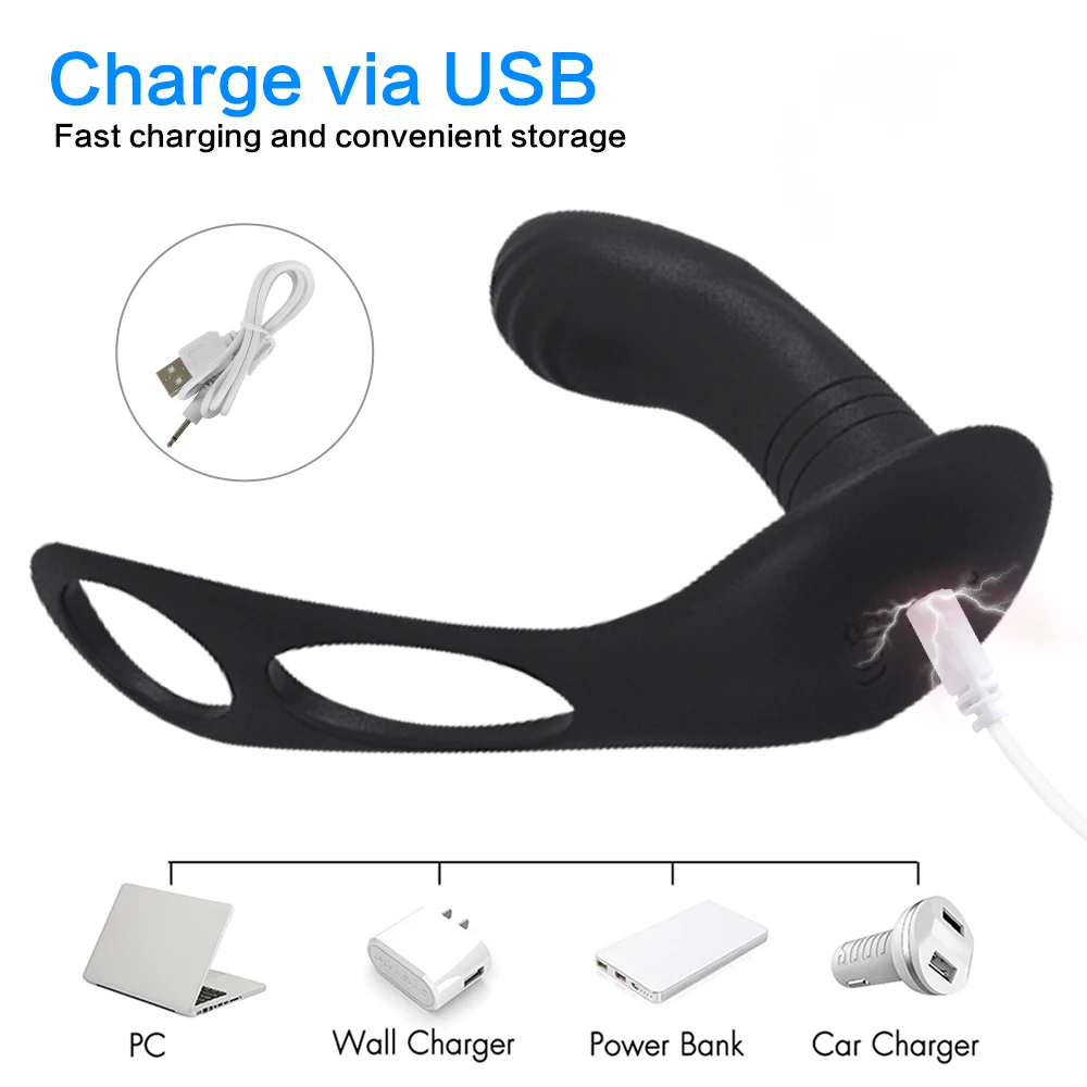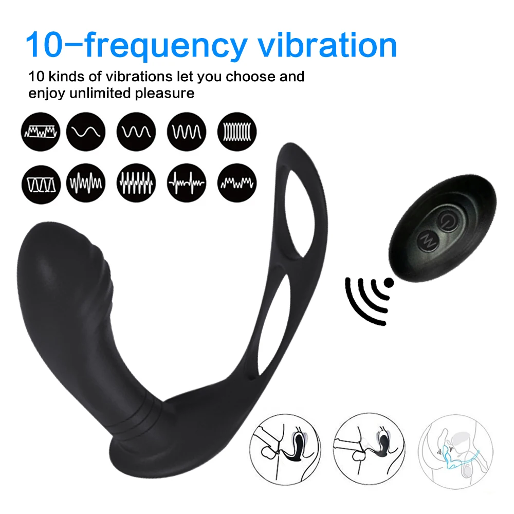 Вибрационное кольцо для зарядки через USB, Мужская секс-игрушка, массажер простаты для мужчин, 10 скоростей, беспроводной пульт дистанционного управления, пробка, анальная пробка
