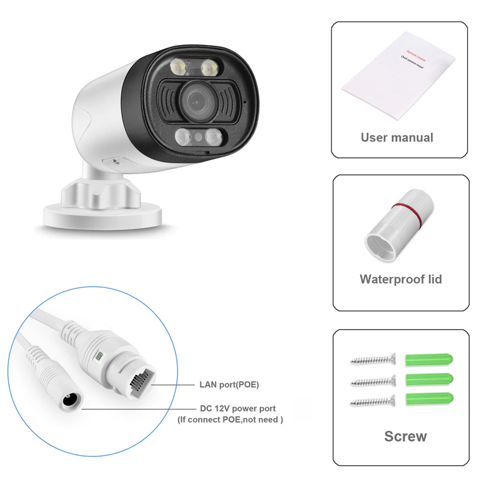 Камера POE 48 В: Встроенный модуль PoE стандарта 802.3af, он может работать с инжектором PoE 48 В или сетевым видеорегистратором POE 48 В, стандартом 802.3af. Если у вас нет инжектора PoE 48 В или сетевого видеорегистратора POE 48 В, вы можете использовать адаптер питания 12 В, 1 А/2 А (не входит в комплект) для работы с камерой POE (POE48V и DC12V двойного назначения)