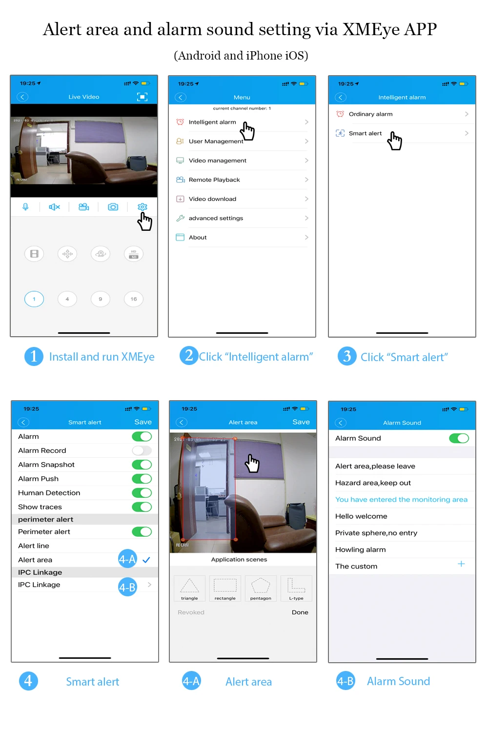 Вы можете установить зону оповещения или линию оповещения, вы можете настроить звук будильника