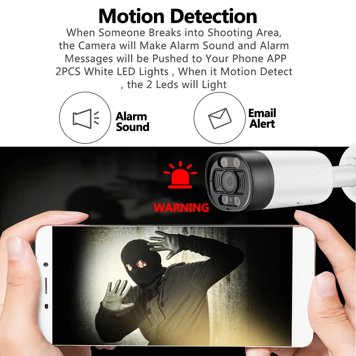 Интеллектуальное оповещение: ночью включаются 2 ИК-светодиода, при движении включаются 2 белых светодиода (по умолчанию)