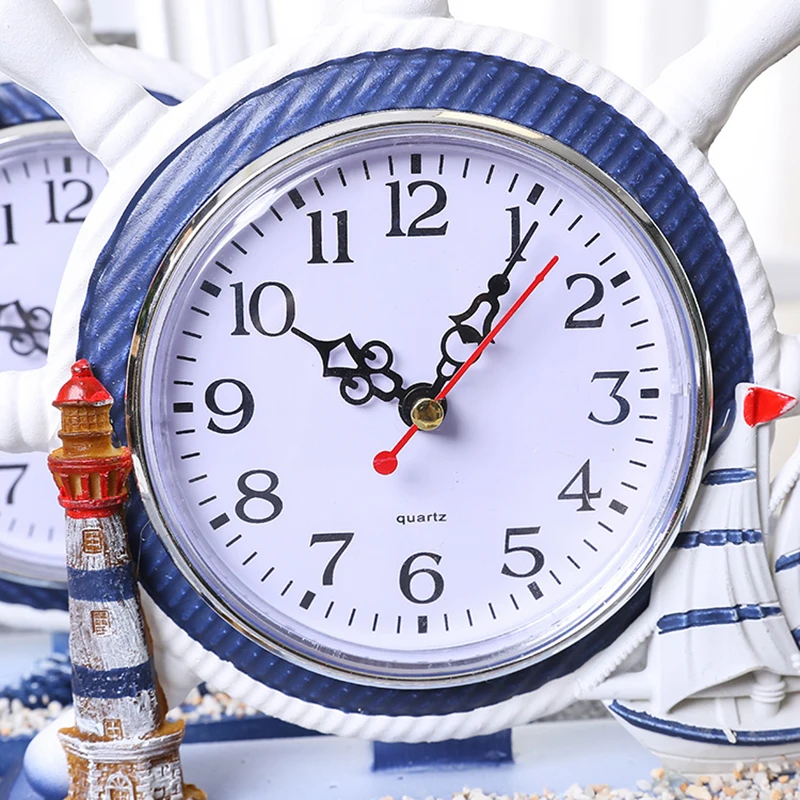 Дерево Якорь часы висит настенные часы в средиземноморском стиле штурвал настольные часы для спальни гостиной Морской Декор