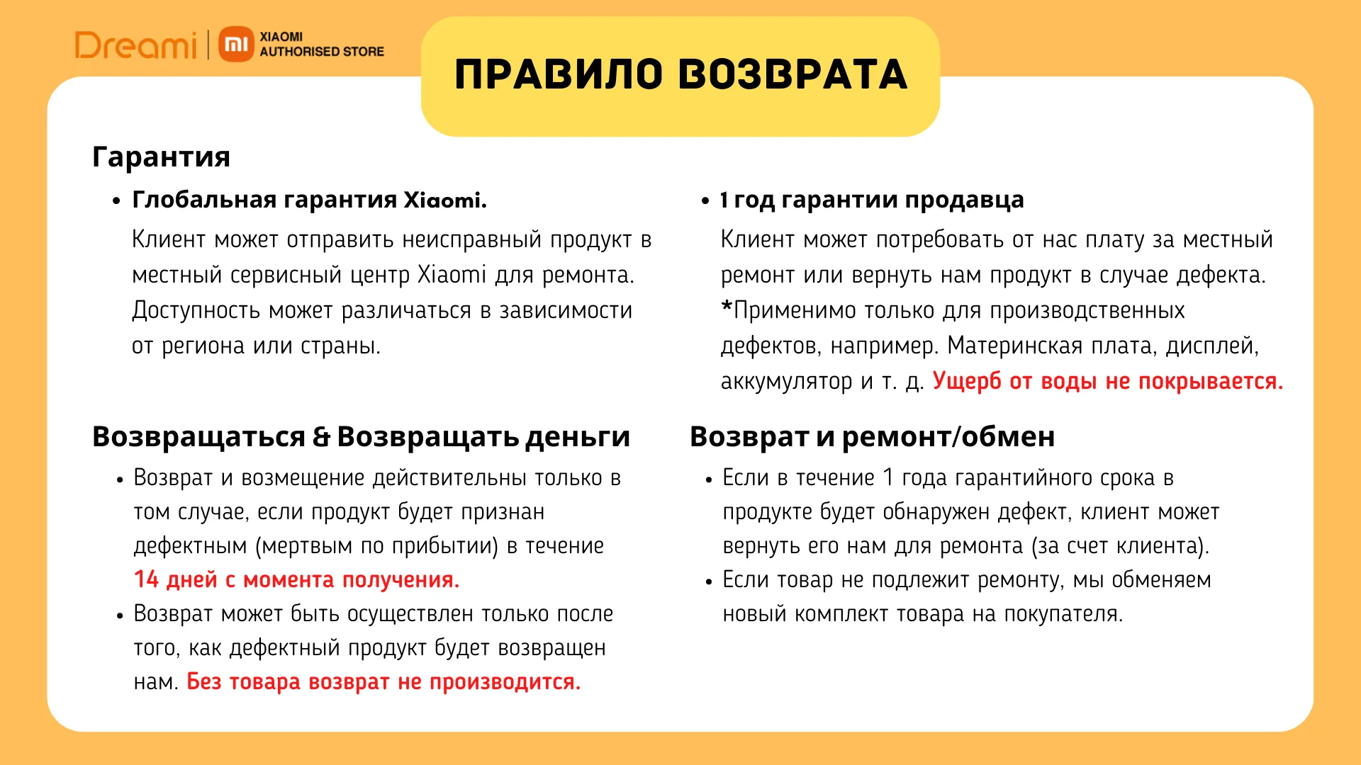 ⚠ DOA — это когда вы получаете товар и замечаете дефект производителя в течение 14 дней, вы можете запросить полный возврат средств (пожалуйста, свяжитесь с нами, и мы сначала предоставим решения).