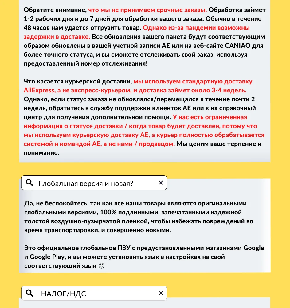 ⚠ Мы хотели бы сообщить вам, что мы не приняли срочный заказ. Мы используем стандартную доставку AliExpress. Доставка займет 3-4 недели в зависимости от страны/региона.