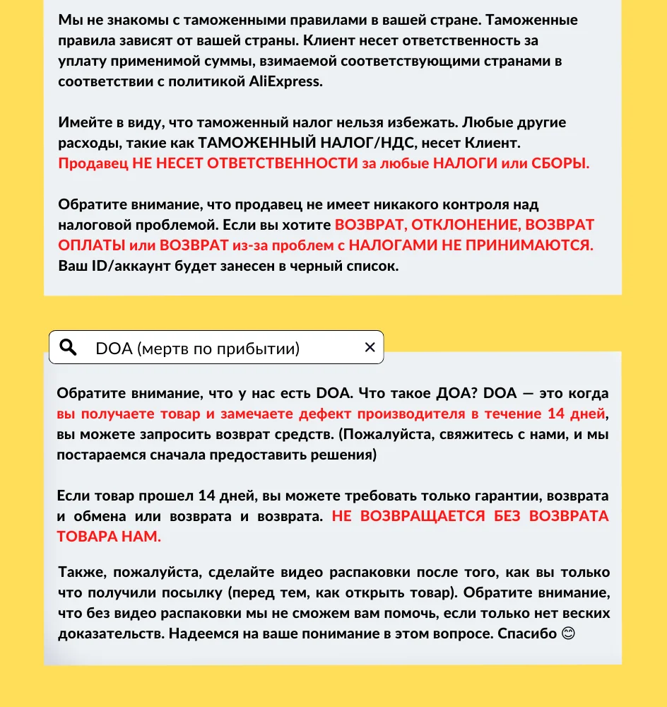 ⚠ Нет возврата/возврата/отказа и возврата товаров из-за таможенных или налоговых вопросов. Пожалуйста, свяжитесь с местной таможней для получения дополнительной помощи относительно налоговой ставки.