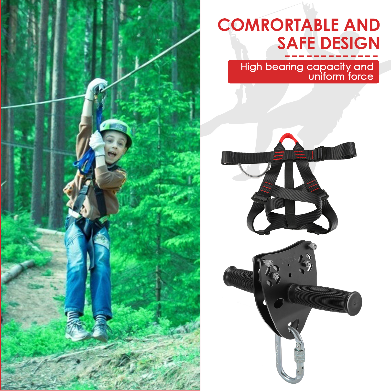 【safety braking design】: equipped with half body safety belt and reinforced bearing ring, you don't have to worry about falling in the process of playing. When you arrive at the end, the safety spring brake will greatly reduce the speed and ensure safety.