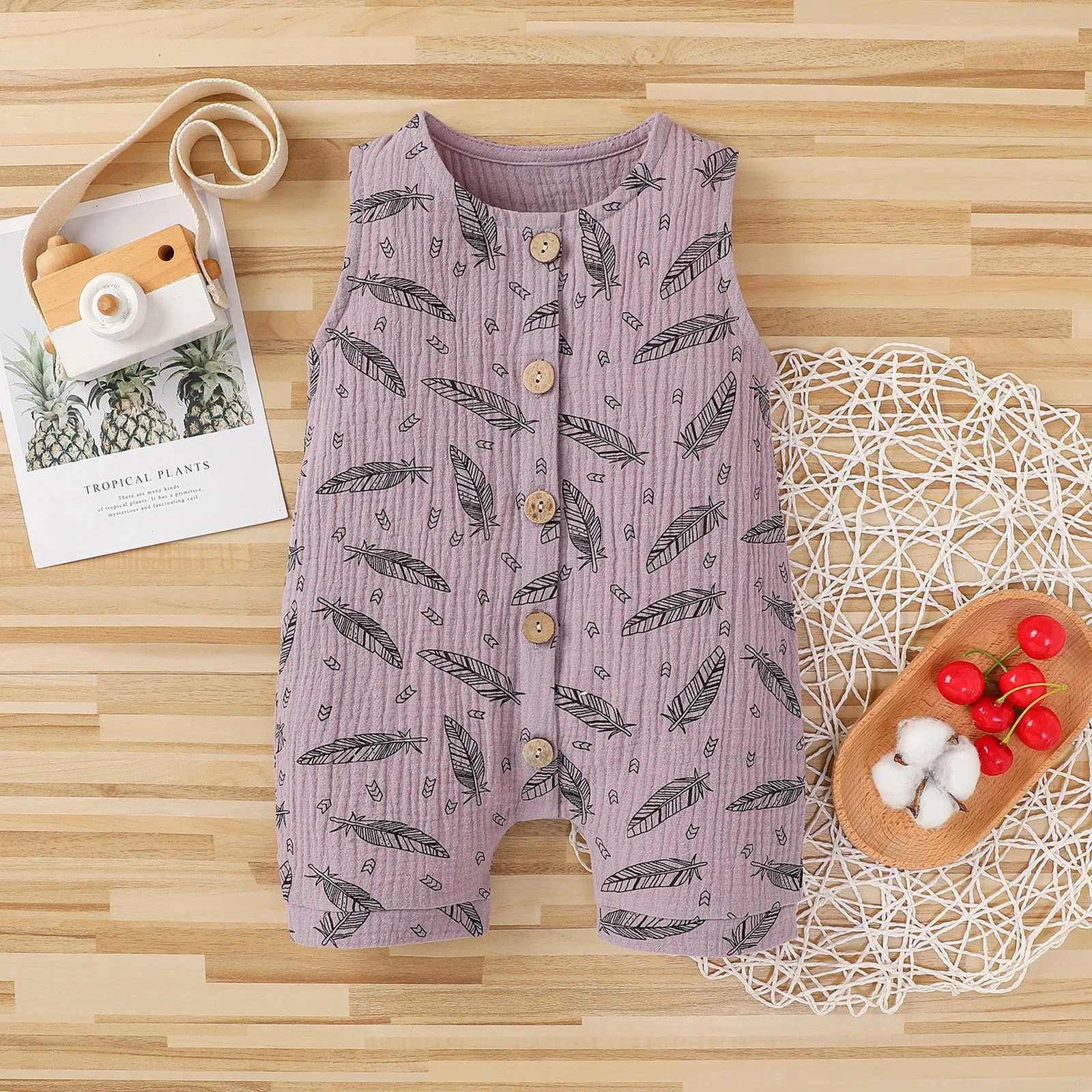Летний льняной комбинезон с пуговицами для новорожденных мальчиков