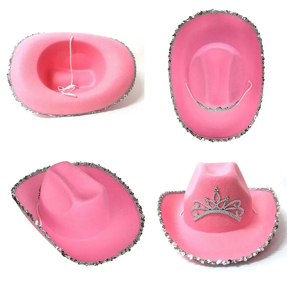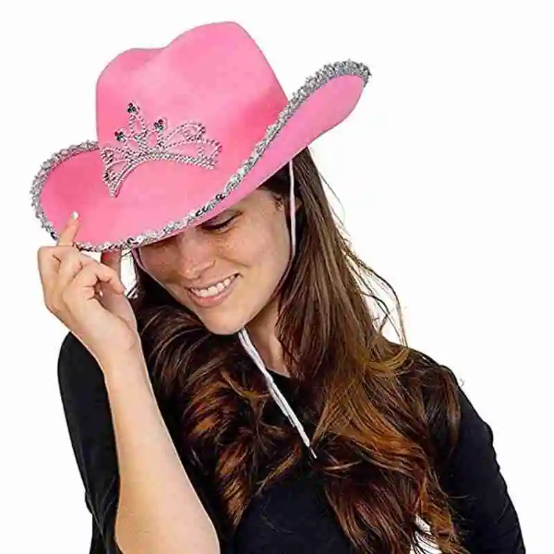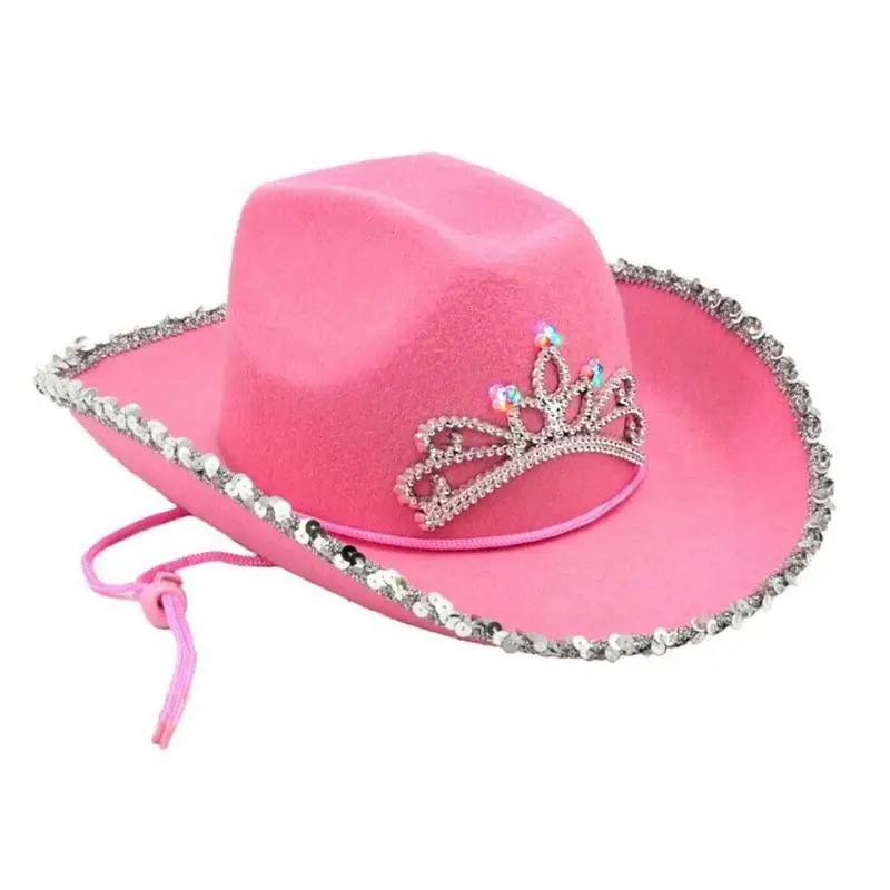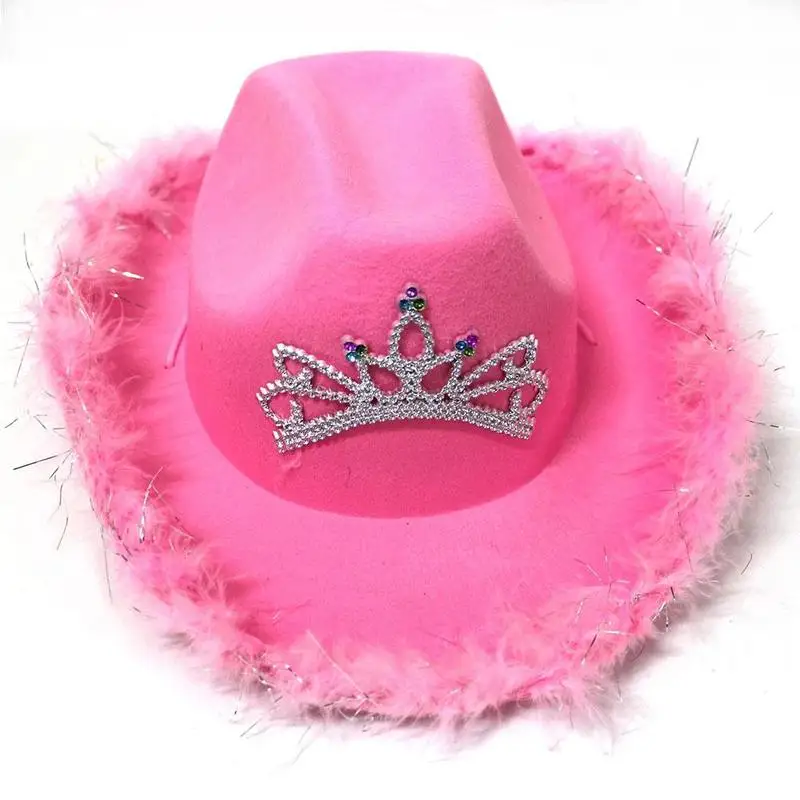 Женская панама в виде короны, стразы, с перьями, розовая ковбойская шляпа, женские ковбойские шляпы, женские шляпы, сомбреро, женская шляпа, ковбойский костюм, праздничные колпаки, со светодиодсветильник кой