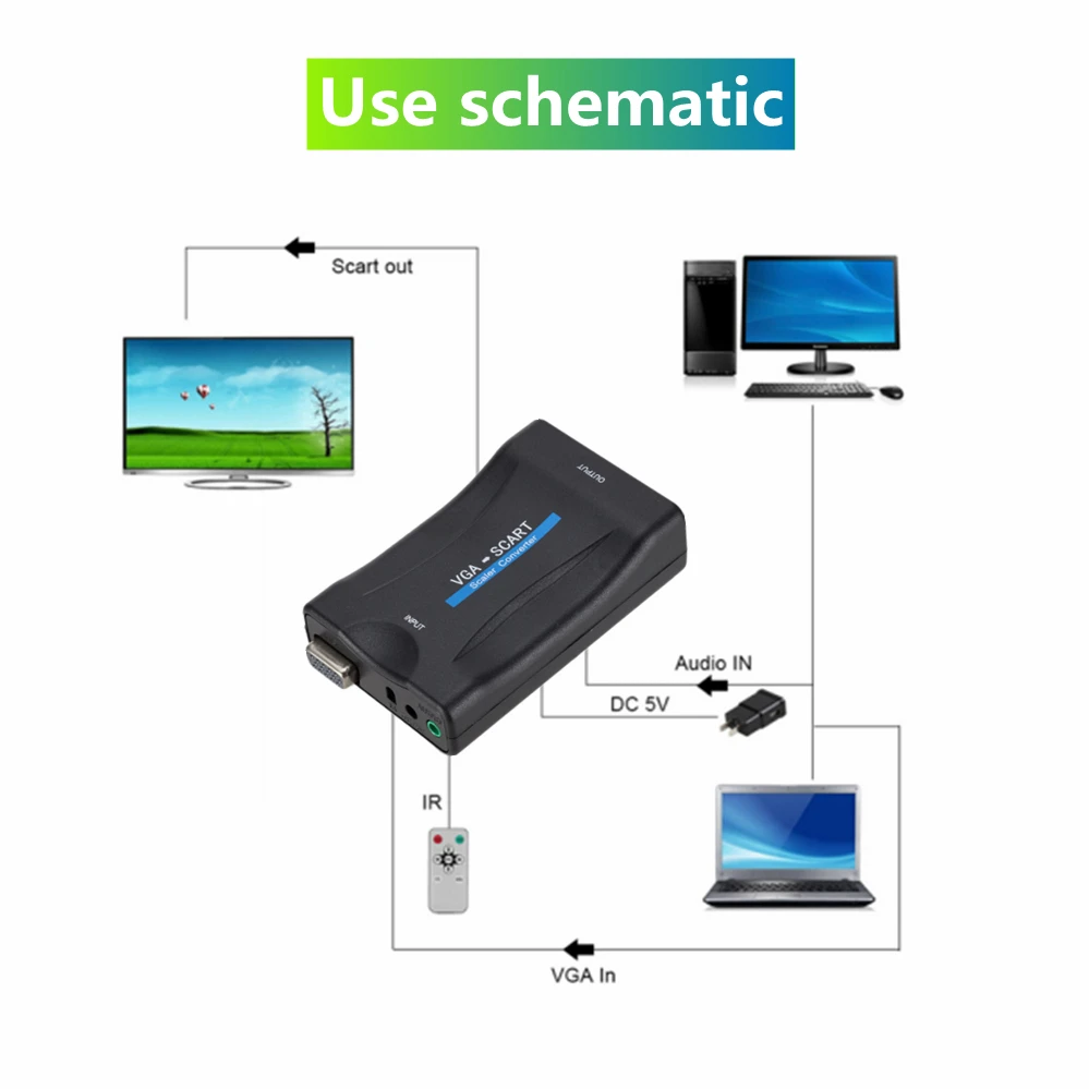 PzzPss Новый 1080P VGA в SCART видео аудио конвертер адаптер Цифровой Видео Аудио ТВ сигнальный преобразователь с пультом дистанционного управления