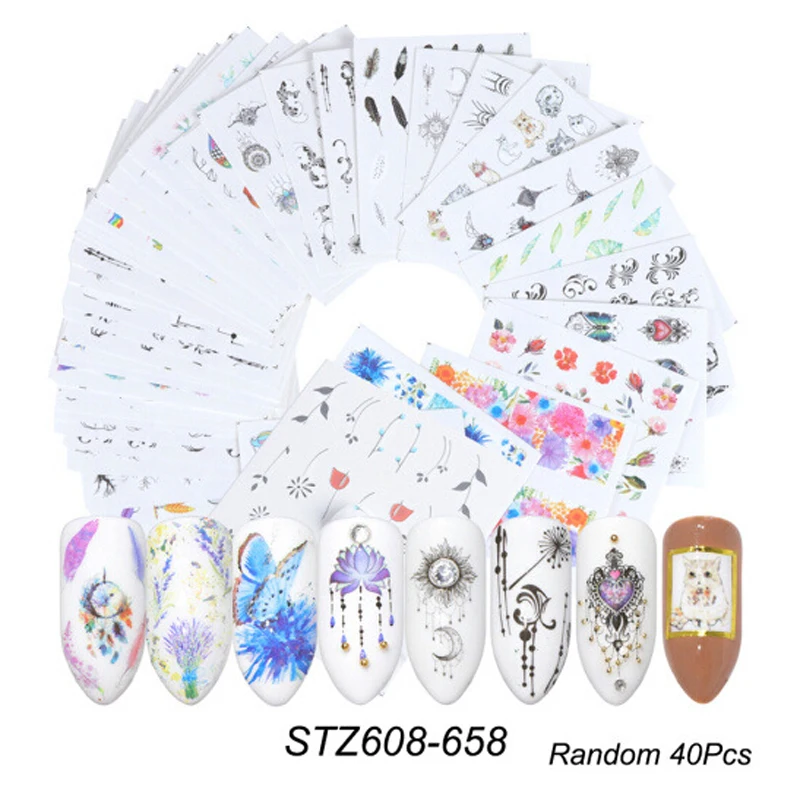 40 листов Водные Наклейки для ногтей в одном пакете