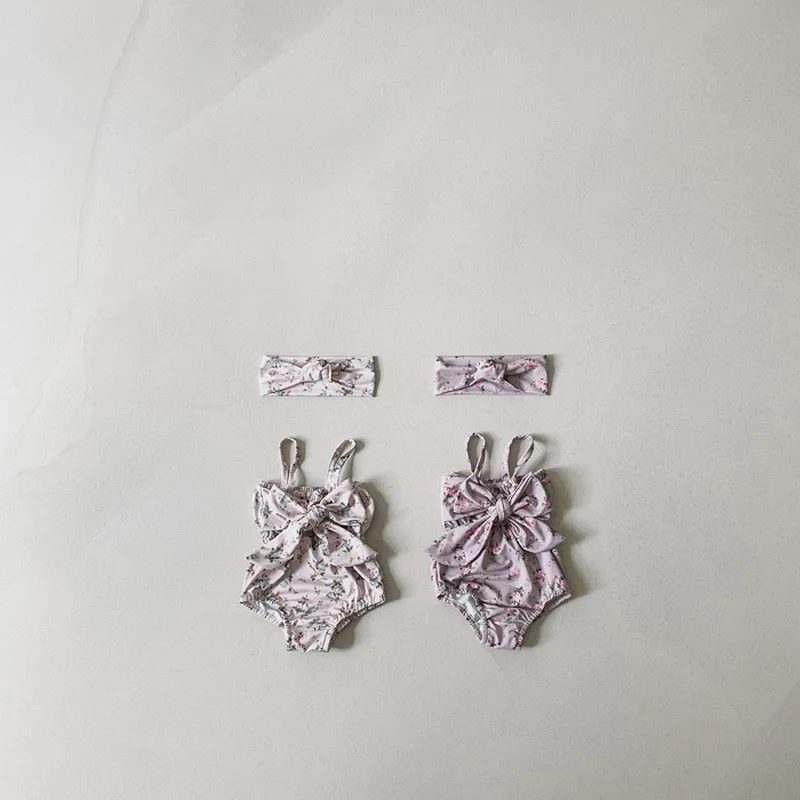 Детский раздельный купальник с бантом для девочек; Летний купальный костюм для малышей; Детский купальник с цветочным рисунком; Цельнокроеная детская пляжная одежда; Комбинезон с цветочным рисунком