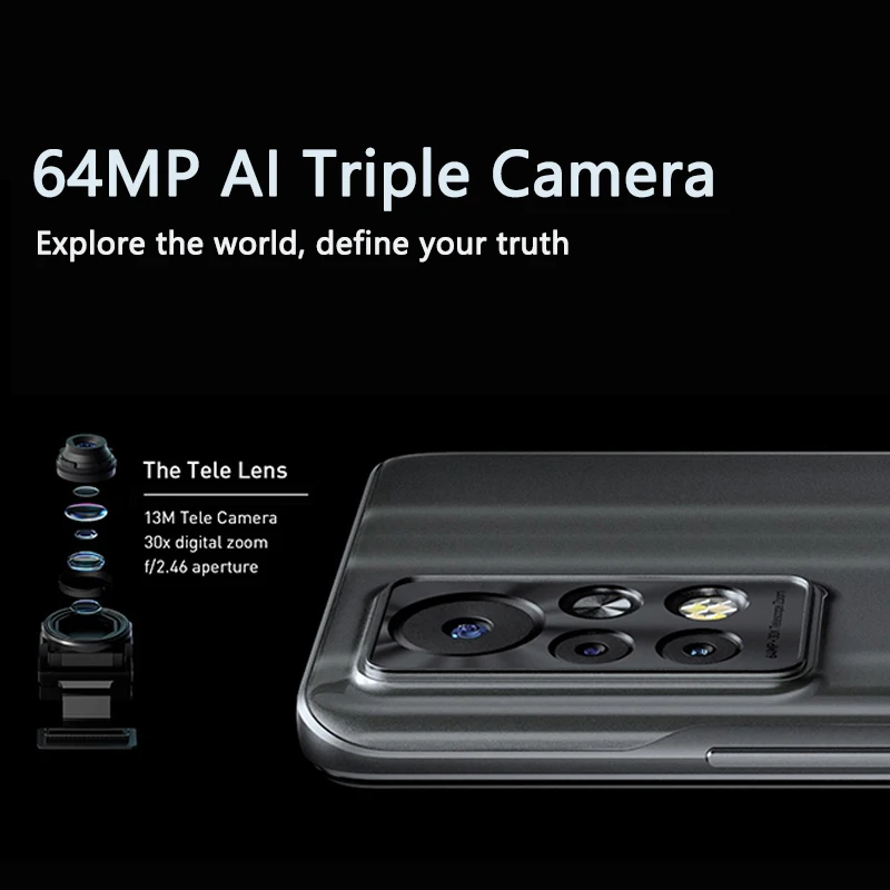 Камера:Задняя камера(64M/AF + 13MP + 2MPwith Quad Flash светильник) 30X телескоп зум; Фронтальная камера: 16MP FF с двойной вспышкой светильник