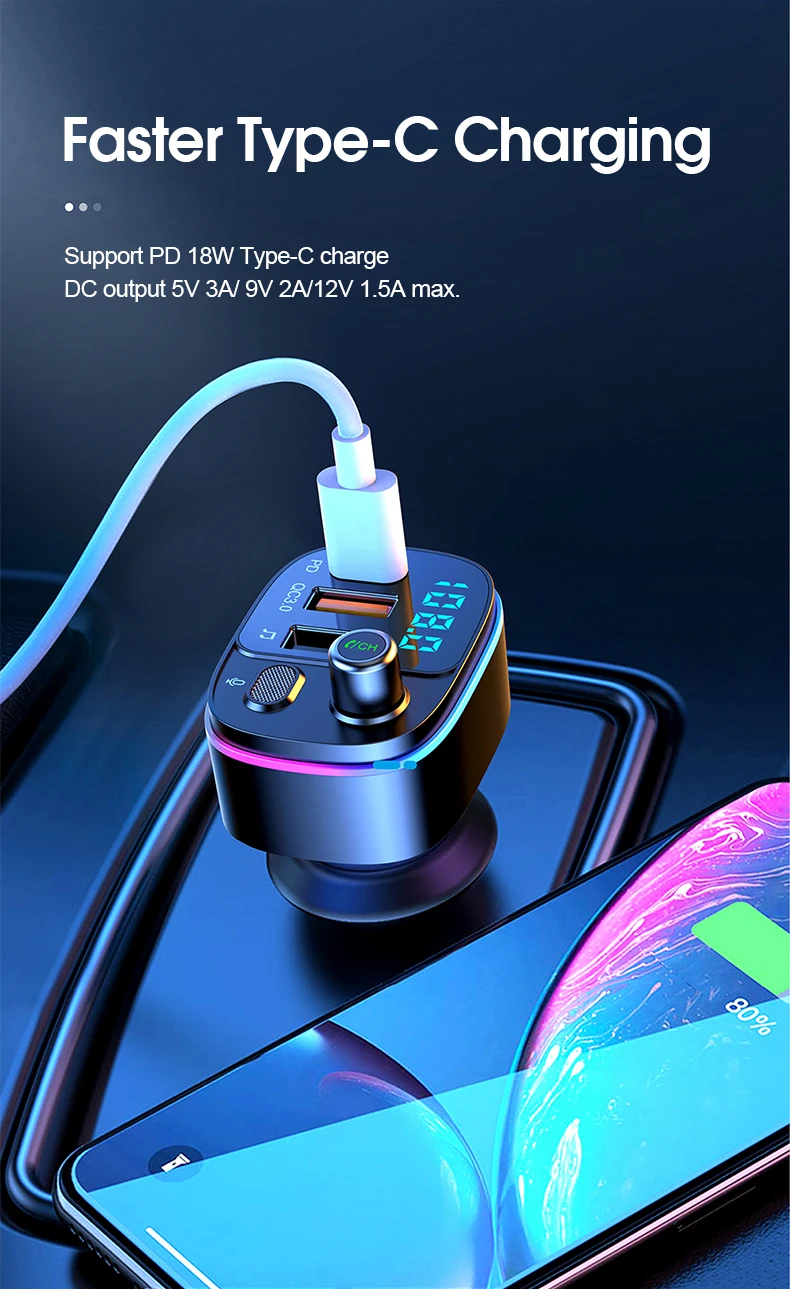 Bluetooth 5,0 FM передатчик автомобильный MP3-плеер светодиодный светильник окружающий беспроводной fm-передатчик с навигацией быстрое зарядное устройство U Disk play