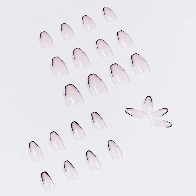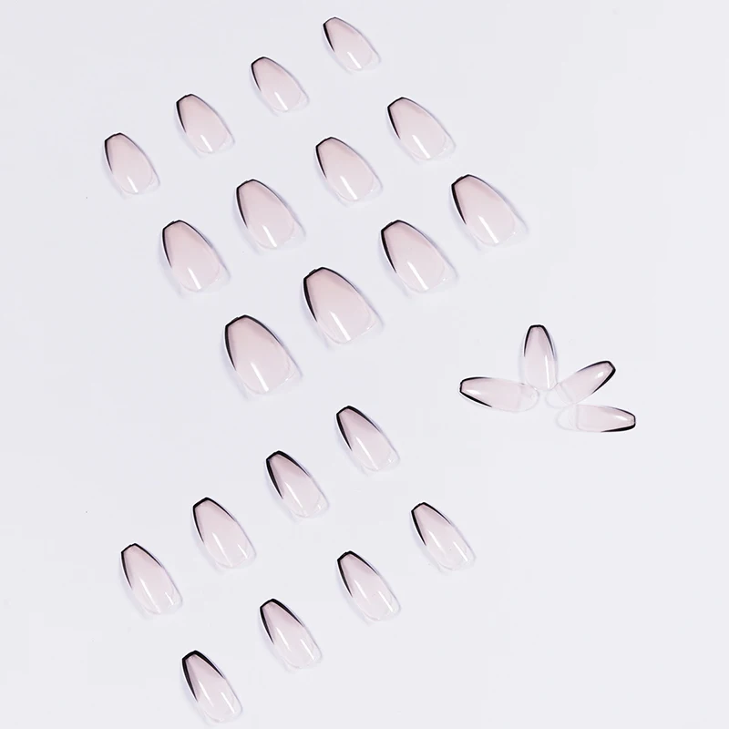 3.Natural long false nails easy to use.Clean your nails,then select the right size of the nails,apply glue sticker to nails and press and hold for 20 seconds.If you take care when removing it later,fake nails can be recycled.