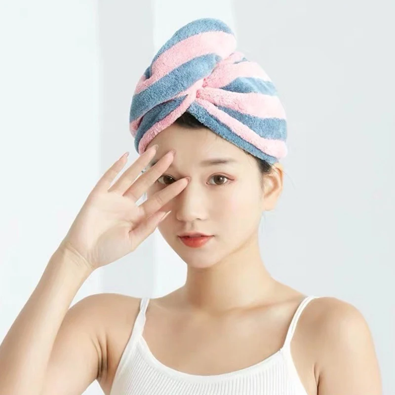 Полосатая сухая шапка для волос, материал кораллового бархата, мягкая и удобная, может впитывать воду, не легко линять волосы. Есть для ношения двумя способами,