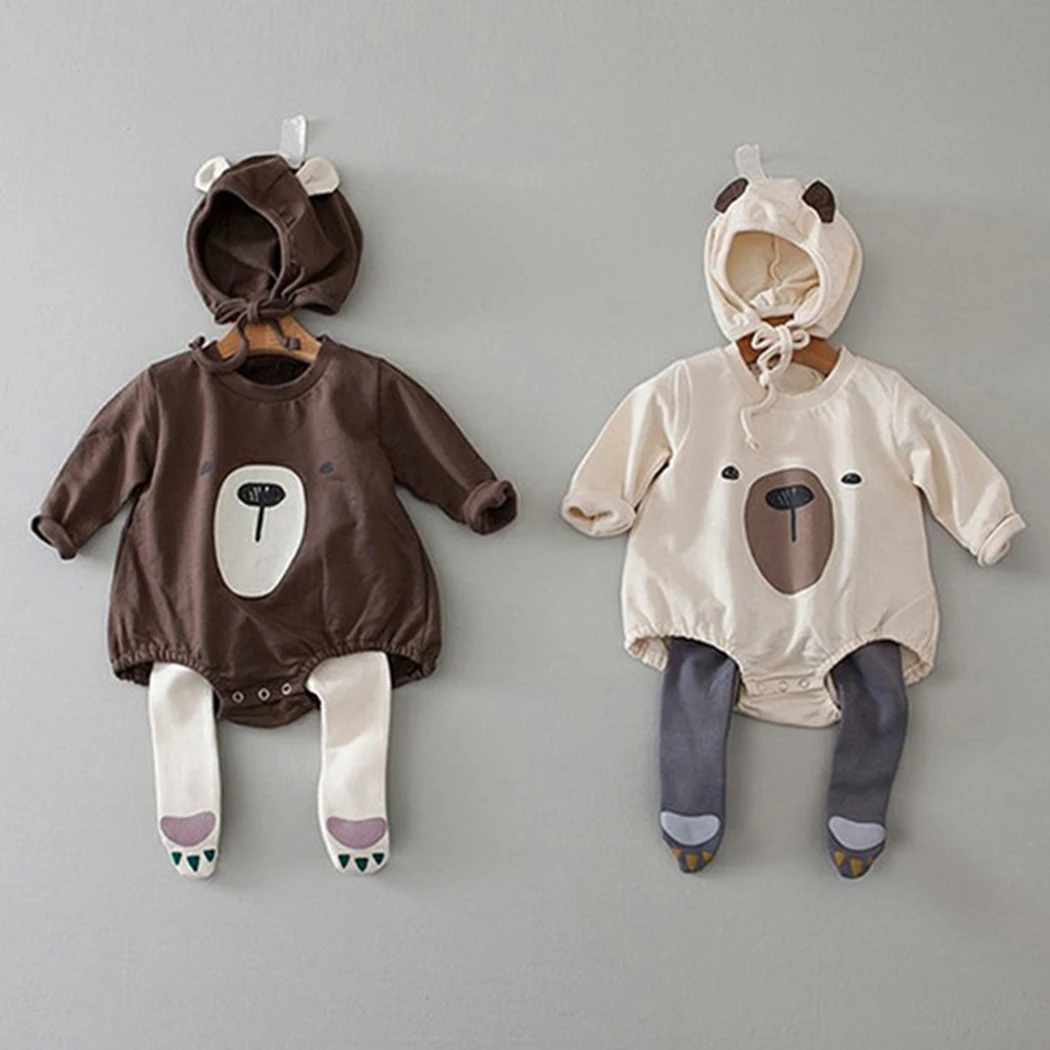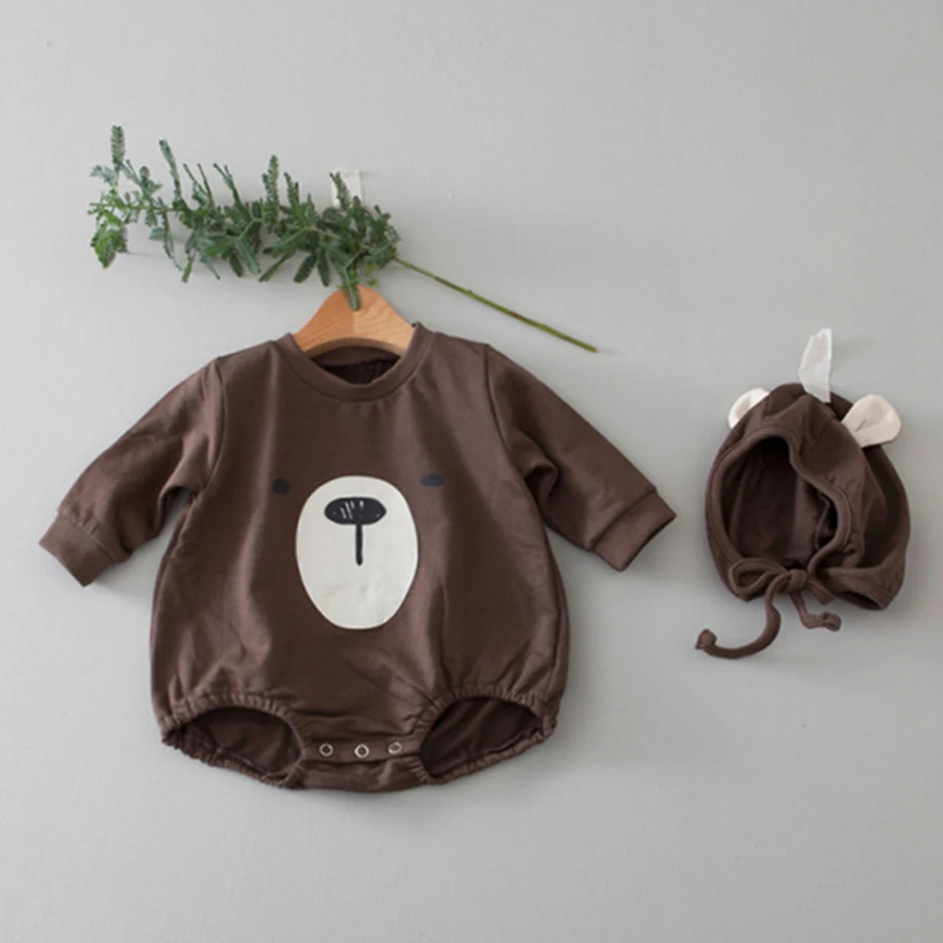 Весенне-осенний комбинезон для младенцев мальчиков девочек + шапочка, комплект из 2 предметов милый комбинезон с длинными рукавами и рисунком медведя, пижама дешевая одежда для новорожденных