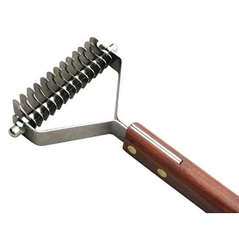 Удобный стриппинг с 13 лезвиями для жесткой шерсти легко и быстро удаляет свалявшуюся шерсть и подшерсток у собак с высокой плотностью шерсти и подшерстка. Специально разработанные изогнутые с закругленными концами лезвия из нержавеющей стали, надежно закреплены на деревянной ручке. Длинна рукояти 12,5 см. Рабочая поверхность 7 см. (экстра широкая).