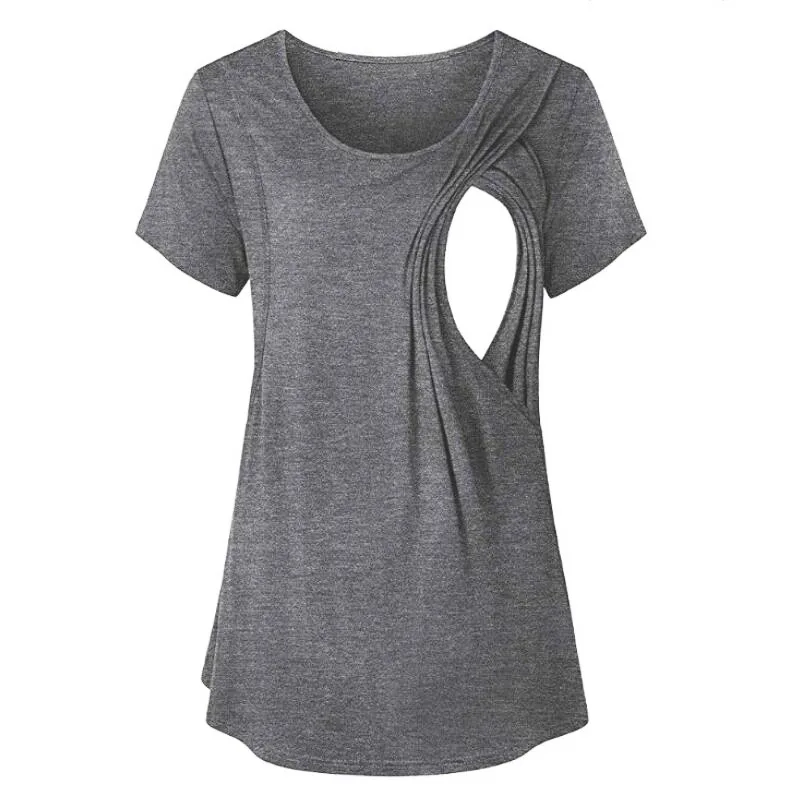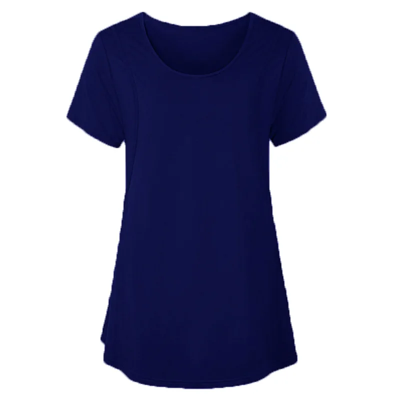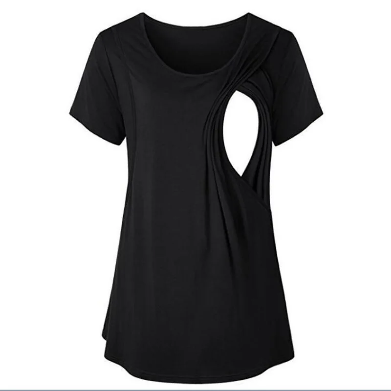 Простая однотонная одежда с круглым вырезом и короткими рукавами для беременных женщин, топ для грудного вскармливания, свободная повседневная футболка
