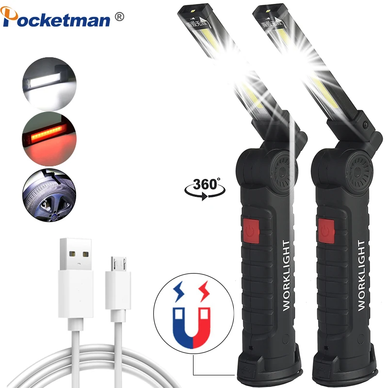 Светодиодный светильник для работы, Перезаряжаемый USB COB светодиодный светильник для вспышки, магнитный рабочий светильник, инспекционный светильник, 5 режимов, задний ультра яркий подвесной фонарь, 2 размера, водонепроницаемый, для ремонта автомобиля, домашнего использования и чрезвычайных ситуаций