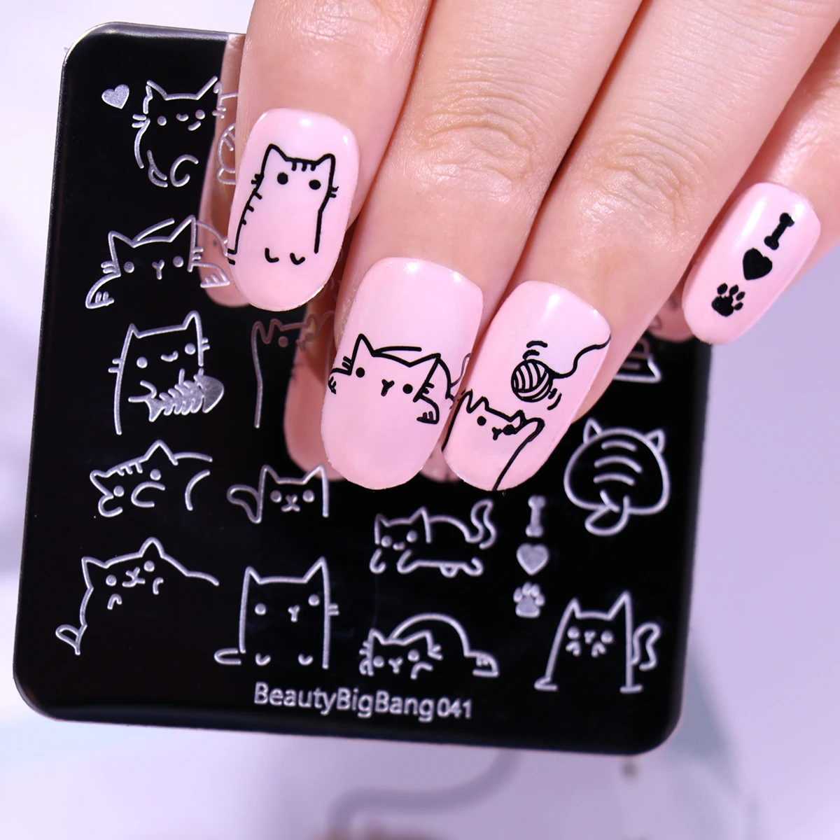 BeautyBigBang 6 см штампованные пластины для ногтей в полоску с изображением милого кота из нержавеющей стали Шаблон для дизайна ногтей штамповочная пластина 041