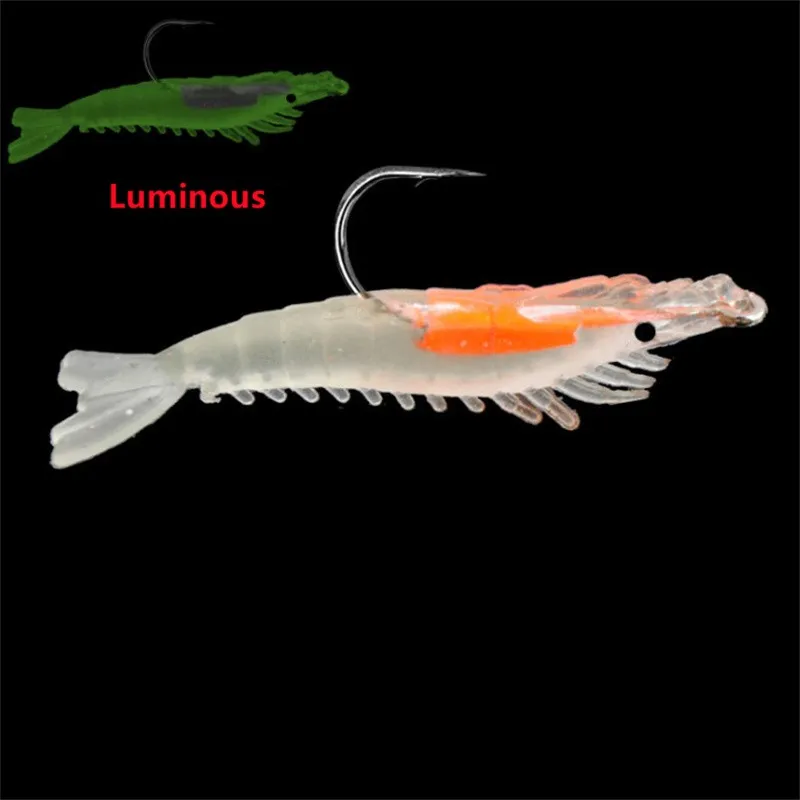2pcs Hot Sale New 6cm/3g Luminous Shrimp Squid Silicon Soft Artificial Bait With Jigs Lure Hooks Swivels Rigs Fishing Tackle