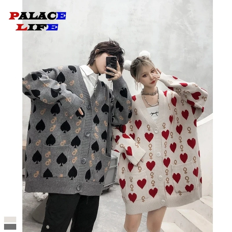 Свитер-кардиган для мужчин и женщин, уличный вязаный пуловер большого размера, повседневный джемпер в стиле хип-хоп для пары, кардиган с v-образным вырезом в стиле Харадзюку