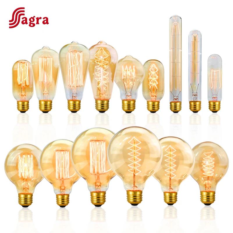 Retro Edison Bulb E27 220V 40W Light Bulb ST64 G80 G95 T10 T45 T185 T225 A60 Filament Incandescent Ampoule Vintage Edison Lamp