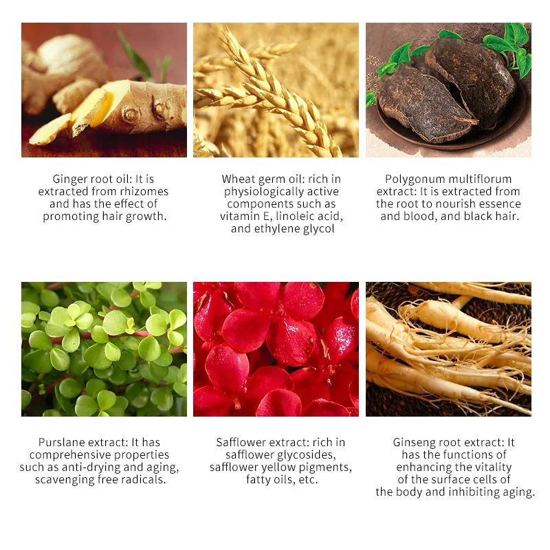 Эффективность продукта:Содержит множество естественных эссенций, таких как масло корня имбиря, корень флиса-цветка, пурпура, корень женьшеня и т. д., глубоко питает волосы, питает питание волос и укрепляет корни волос.