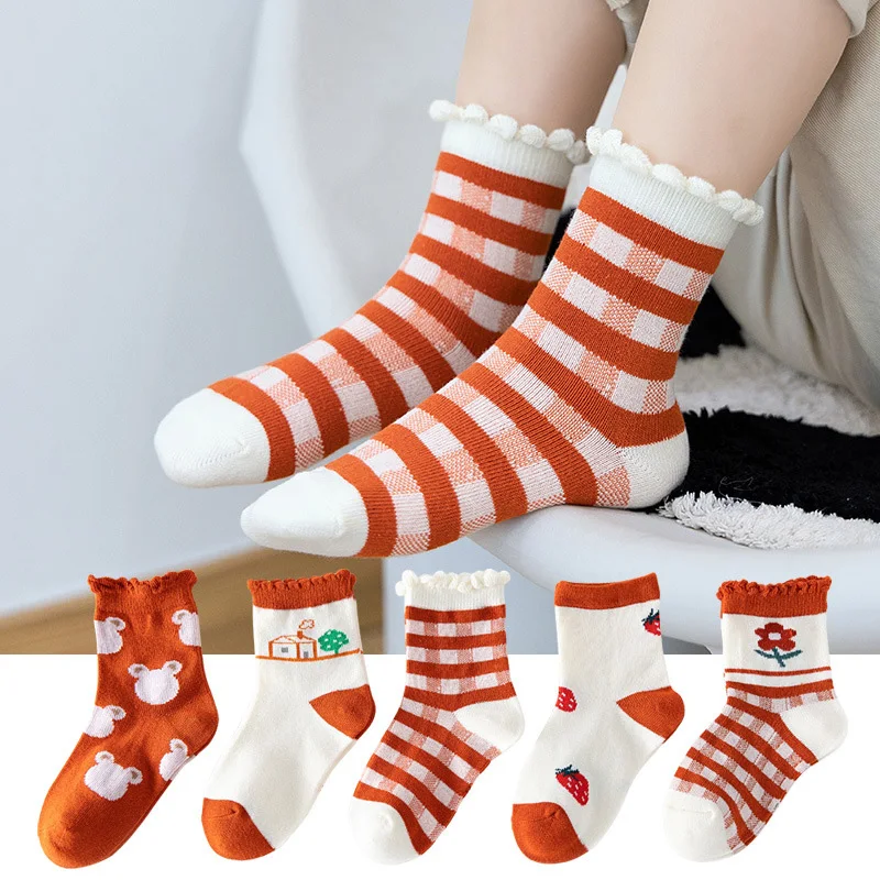 Наименование: 5 пар/лот; Хлопковые детские носки; Сезон осень-зима