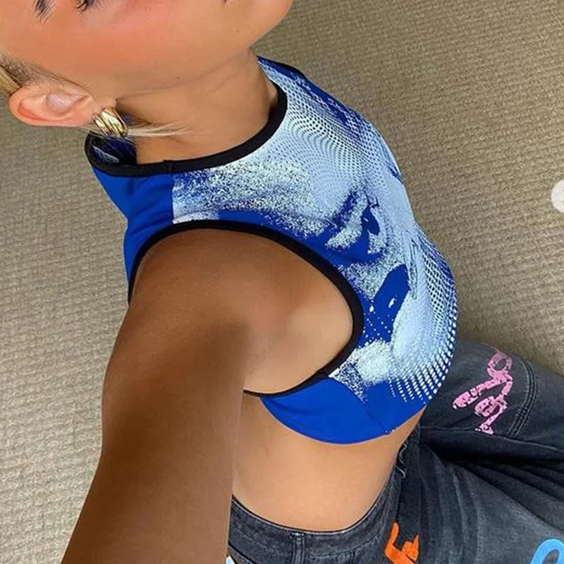 hirigin E-girl Graphic Print Tank Top Y2K Women Summer Sleeveless O Neck Crop Top Female Gothic Harajuku Grunge Vest Streetwear