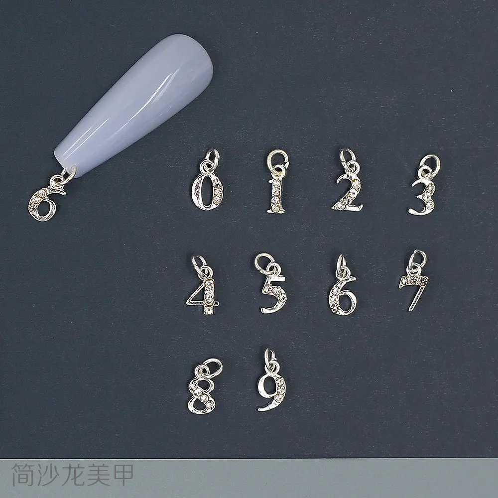Содержание: 10 шт ногтей Подвески (содержит цифры от 0 до 9), а также многоразовый контейнер для хранения