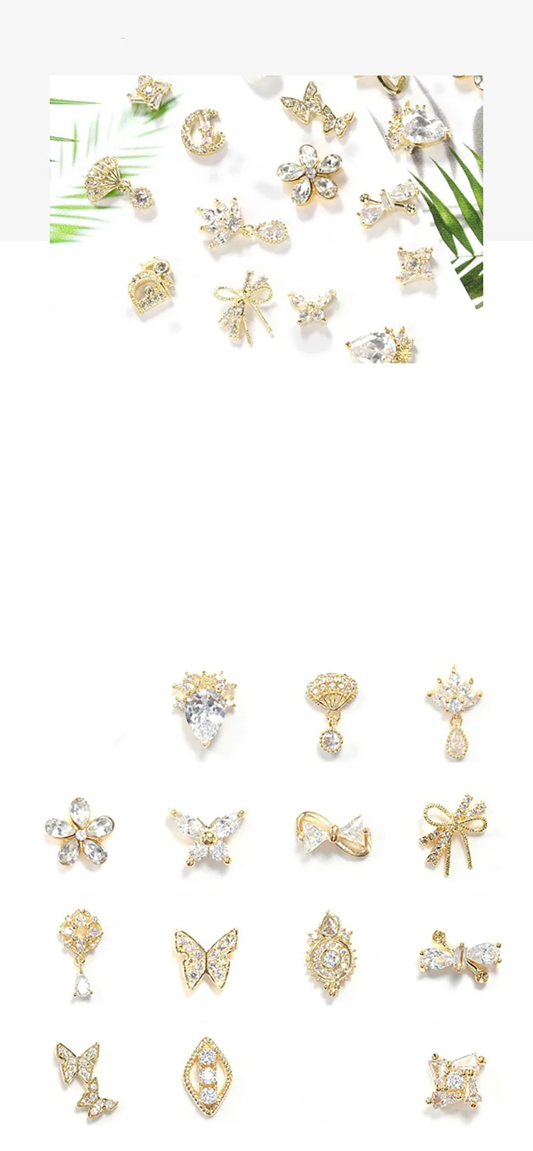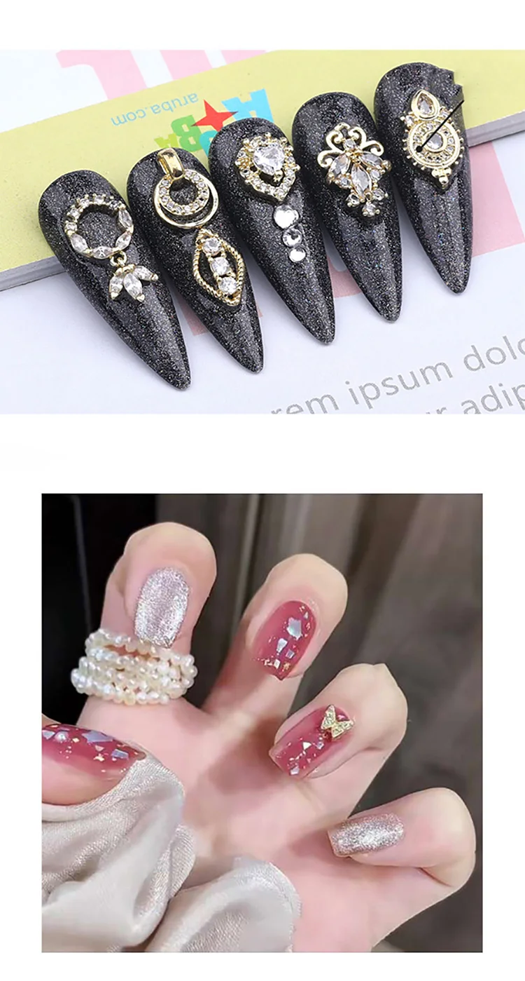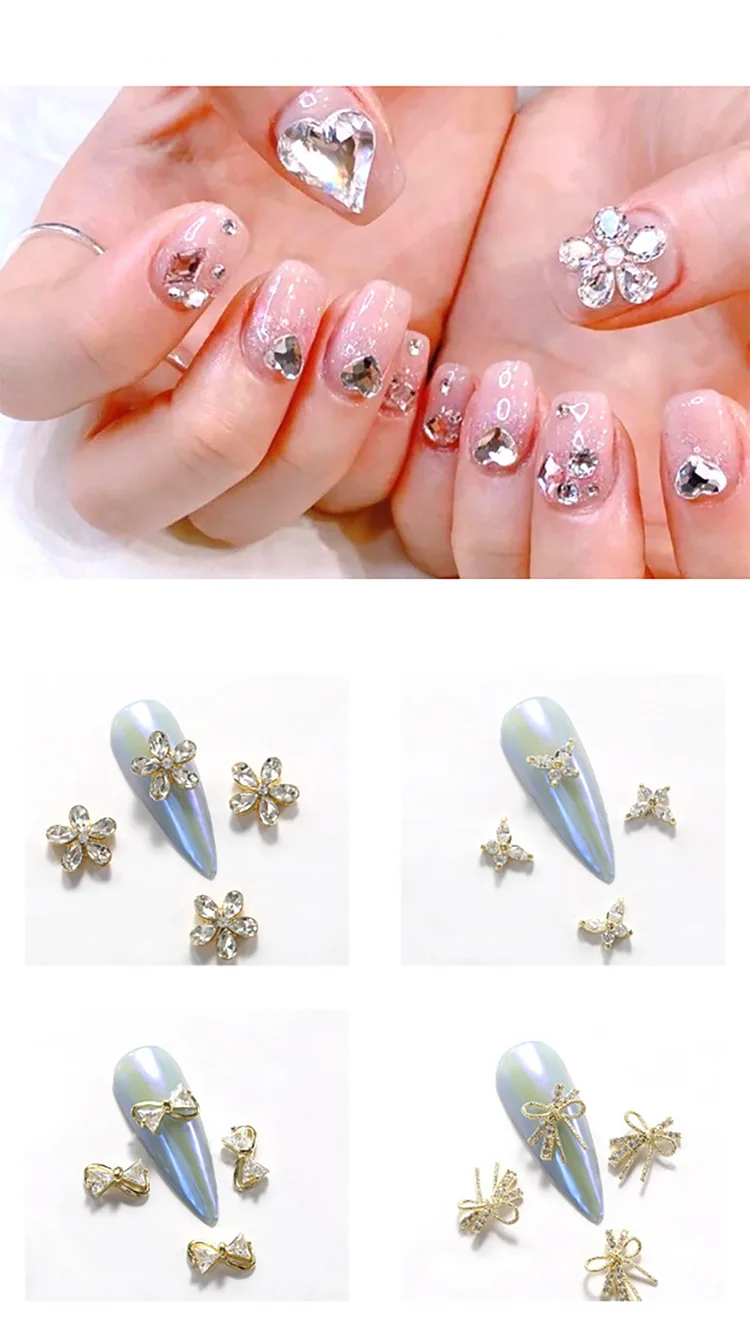 ANYLADY 3 шт., подвески для ногтей, ювелирное изделие из сплава, 3d бриллиант, дизайн ногтей, кристалл, бабочка, цветок, стразы, роскошные золотые драгоценные камни