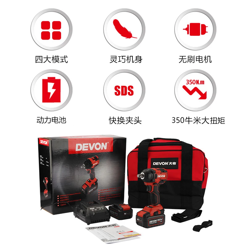 DEVON беспроводной ударный ключ 5733-PLUS 350Nm бесщеточный мотор Share 20V литиевая батарея платформа электроинструмент
