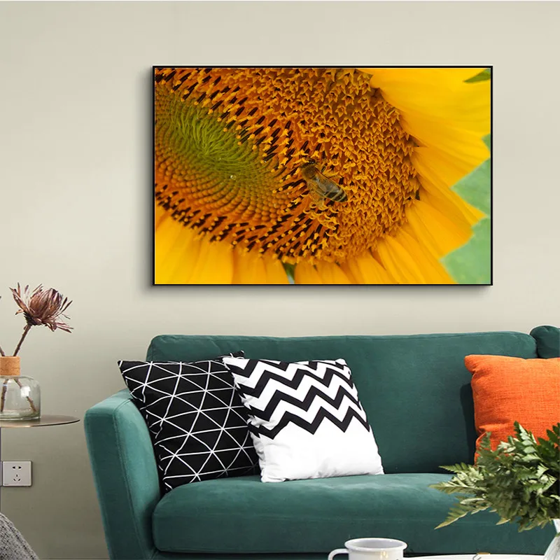 Настенный художественный холст HD принт маленькая пчела Подсолнух плакат современный холст художественный принт цветок настенные картинки для гостиной Декор для прихожей