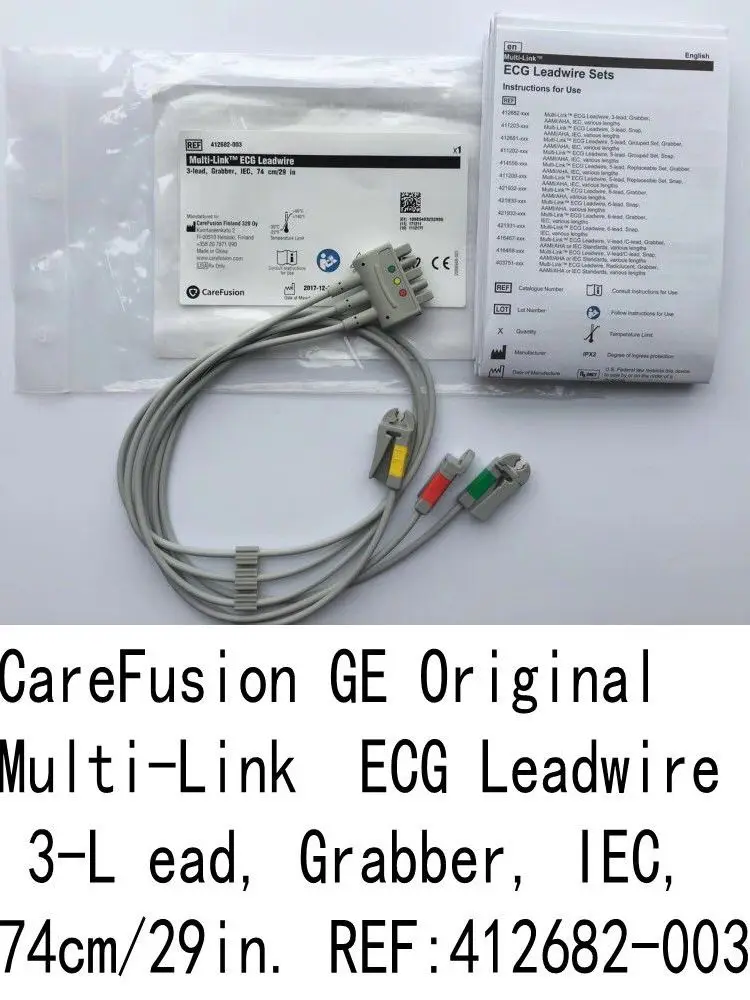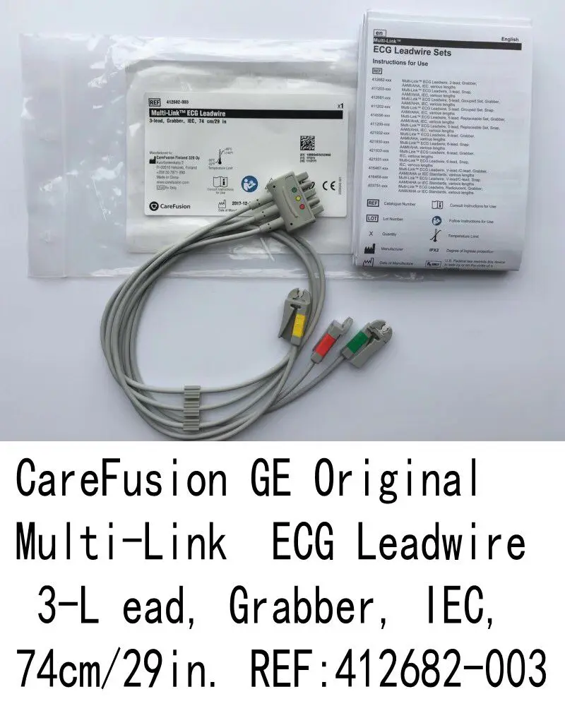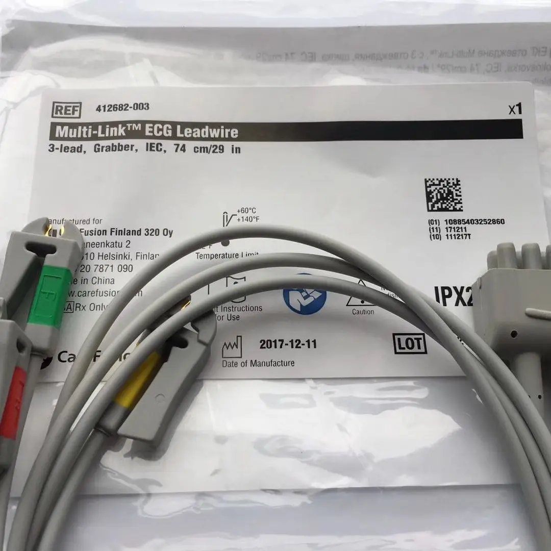 Оригинальный Новый GE многоканальный ECG Leadwire 3 провода Grabber IEC 74 см/29IN REF:412682-003 GE ECG leadwire кабель