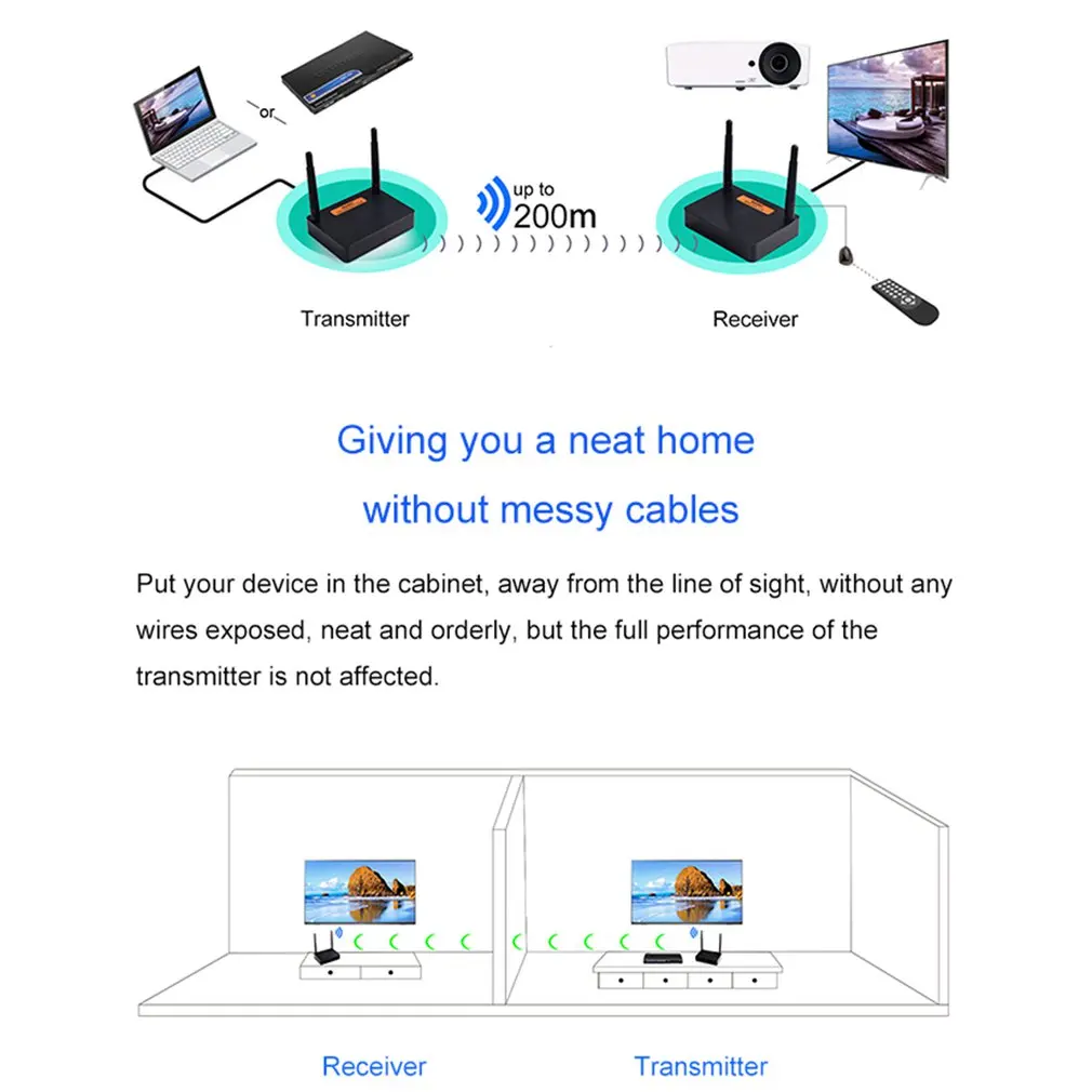 200M Wireless HDMI-compatible Extender 2.4GHz/5.8GHz Full HD 1080P @60Hz WIFI Audio Video Transmitter Receiver