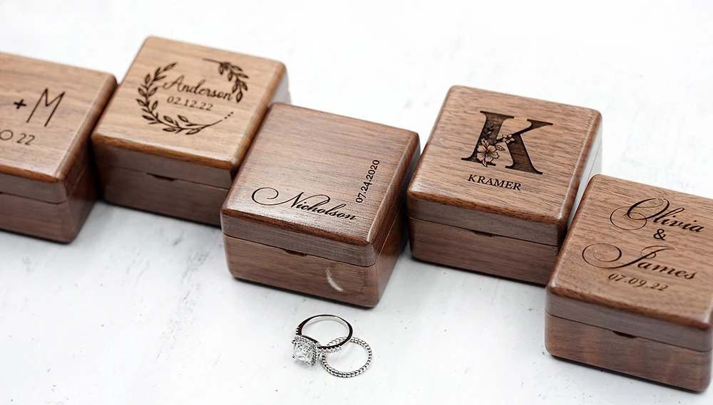 Каждая кольцевая коробка может быть изготовлена в любом из 10 вариантов дизайна! Или отправьте нам свою собственную графику.