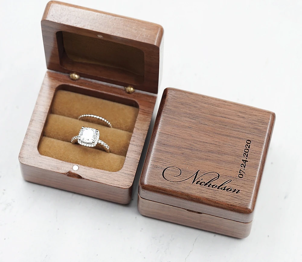 Персонализированная кольцевая коробка для самого большого дня в вашей жизни! Также можно использовать в качестве коробки для свадебных запонок или сережек. Сделайте уникальное дополнение для вашей свадьбы.