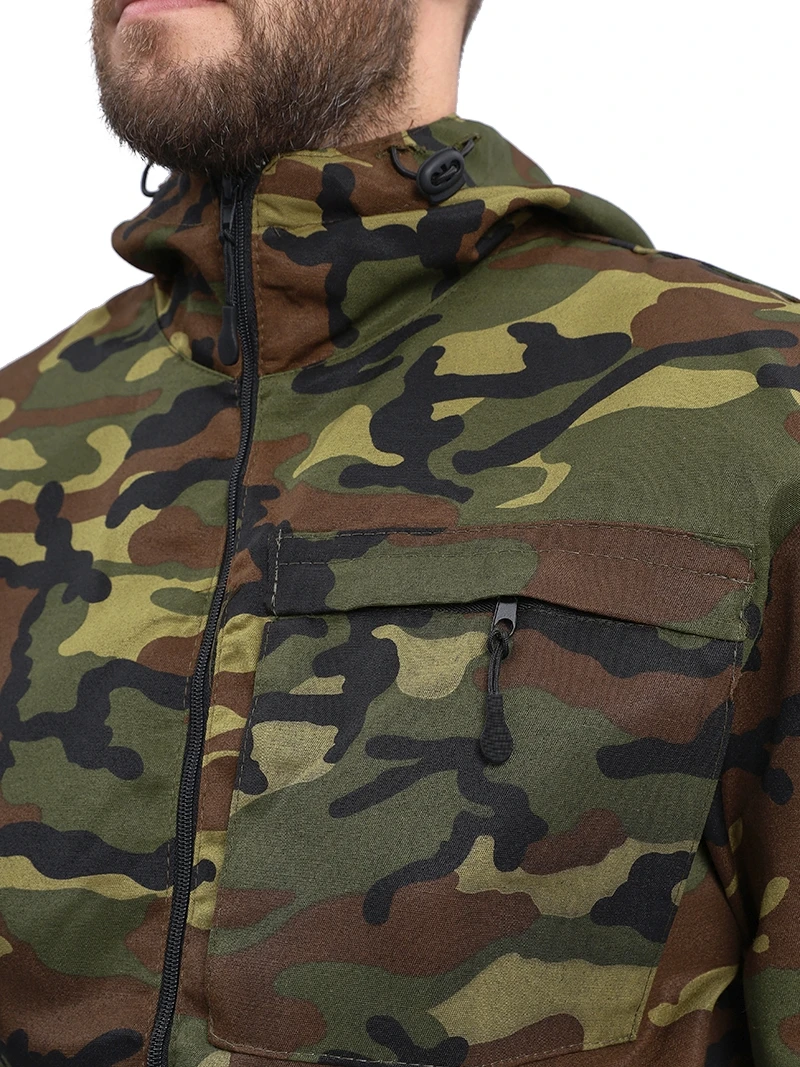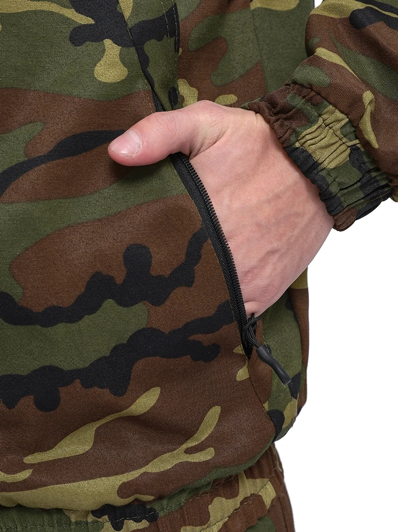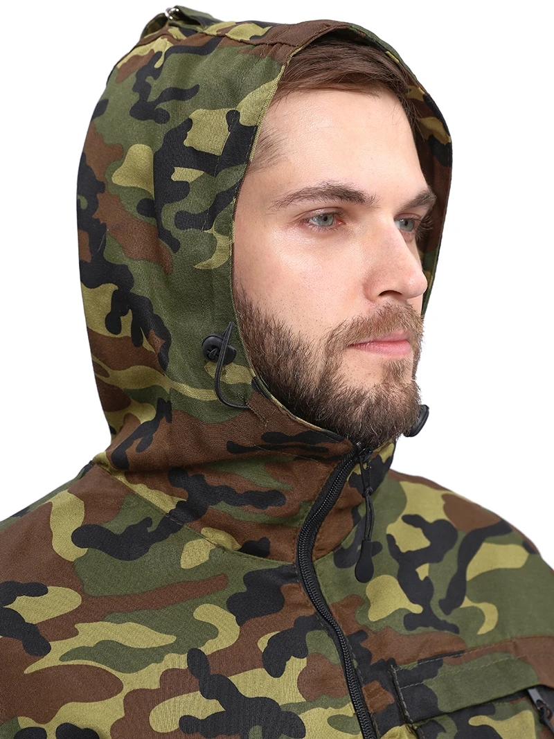 Камуфлированный универсальный летний костюм для охоты, рыбалки и активного отдыха . Состоит из куртки с капюшоном и брюк.