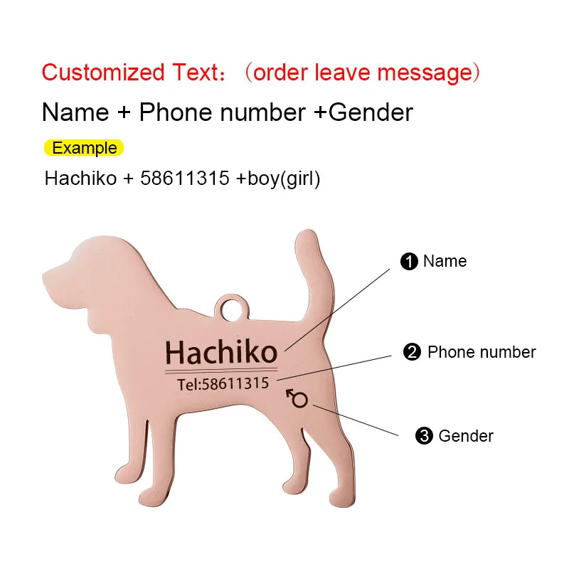 Материал: высококачественная нержавеющая сталь Цвет: серебристый/розовое золото/черный Это включает в себя: 2 * кольцо для ключей 1 * тег для удостоверения личности питомца Текст на заказ: пожалуйста, укажите имя + номер телефона + Пол Это индивидуальные продукты, и нам нужно время, чтобы выгравировать, мы доставим его во время3-4Дней после заказа