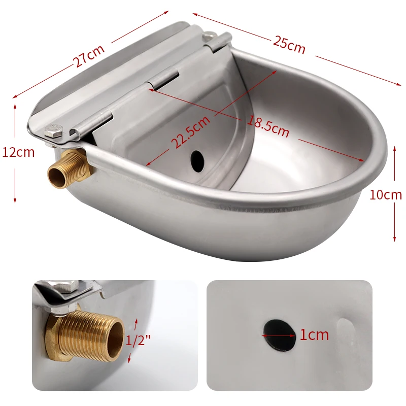1. Медный клапан, высокое качество2. Автоматический поплавок, используйте плавучий принцип уровня воды, достигайте эффекта постоянного уровня воды.3. Изготовлен из нержавеющей стали, прочный и прочный.4. Интерфейс плотный и прочный, с тонкой обработкой.Название: поилка из нержавеющей стали с плавающим шаром для крупного рогатого скотаМатериал: нержавеющая сталь 304Цвет: серебристыйРазмер интерфейса: внешняя резьба 1/2 '' (20 мм)Подходит для: крупных животных, таких как крупный рогатый скот, лошади, овцы, свиньи, собаки и т. д.Характеристики: автоматический выход воды, прочный, водосберегающий и санитарный, и т. Д.Посылка включает в себя: 1 шт. чаша для воды из коровьей кожиПринцип работы:Питьевая чаша может быть непосредственно подключена к водопроводной воде, используя плавучий принцип плавающего шара для автоматического хранения воды;После того, как вода заполняет чашу, поплавок плавает, нажимает на кожаную подушку, и вода автоматически отключается;После того, как животное выпьет воду в чаше для воды, плавающий шар опускается, Кожаная подушка ослаблена, вода автоматически открывается, а чаша для воды заполнена им, И вода автоматически закрывается. Этот цикл реализует самоконтроль воды и экономит воду.Примечание:1. В связи с использованием разных по светильник экране монитора фактический цвет товар точно такой же, как и цвет изделия на фото может быть s светильник ly отличается из-за характеристик монитора компьютера.2. Замеры сделаны вручную, поэтому возможны отклонения на 0-2 см.