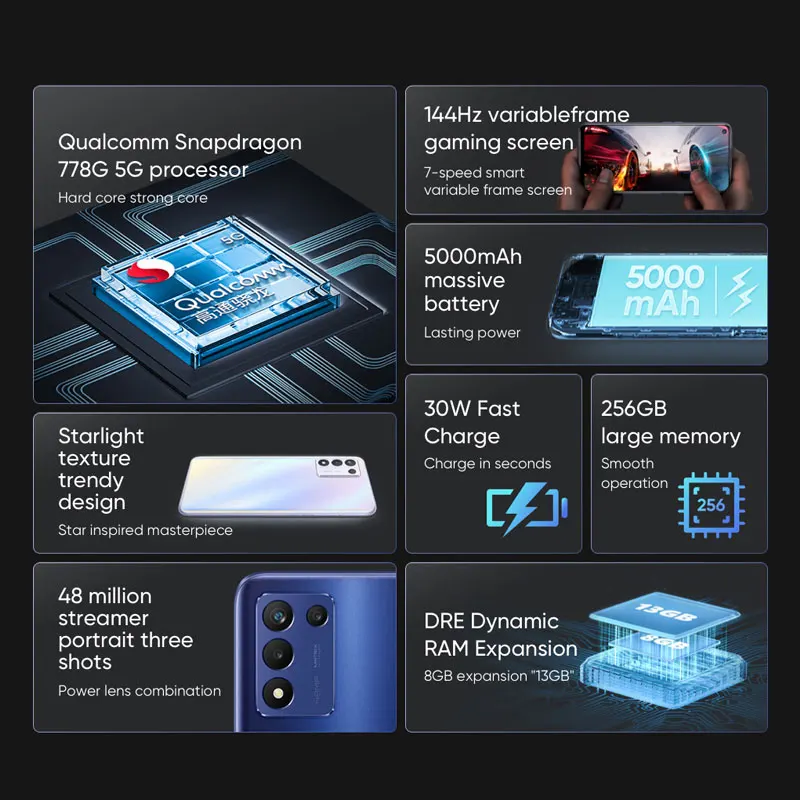 CPU:Snapdragon 778G 5G RAM+ROM: | Screen:6.6'' 2412x1080 FHD+ | |||||||