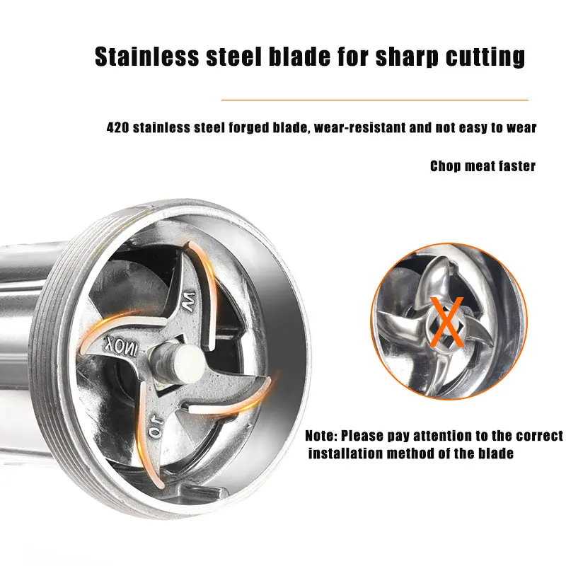【Extended use】Widely used to grinding various of meat, vegetables and nuts, including pork, beef, lamb, fish, chicken (with bone), spices, pepper, mushrooms, long beans, radishes, etc. (Widely Application)Pay attention to cleaning the item before using.